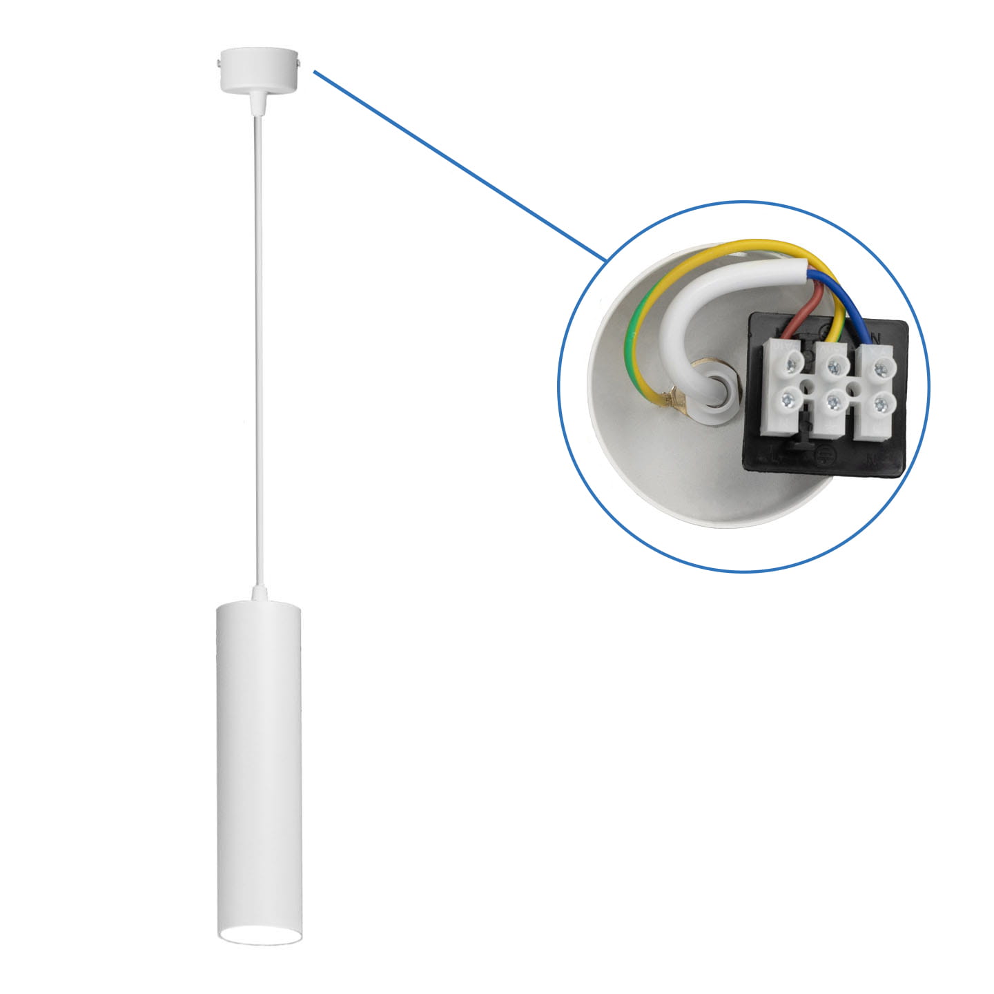 3x Lampa wisząca biała tuba GU10 29cm