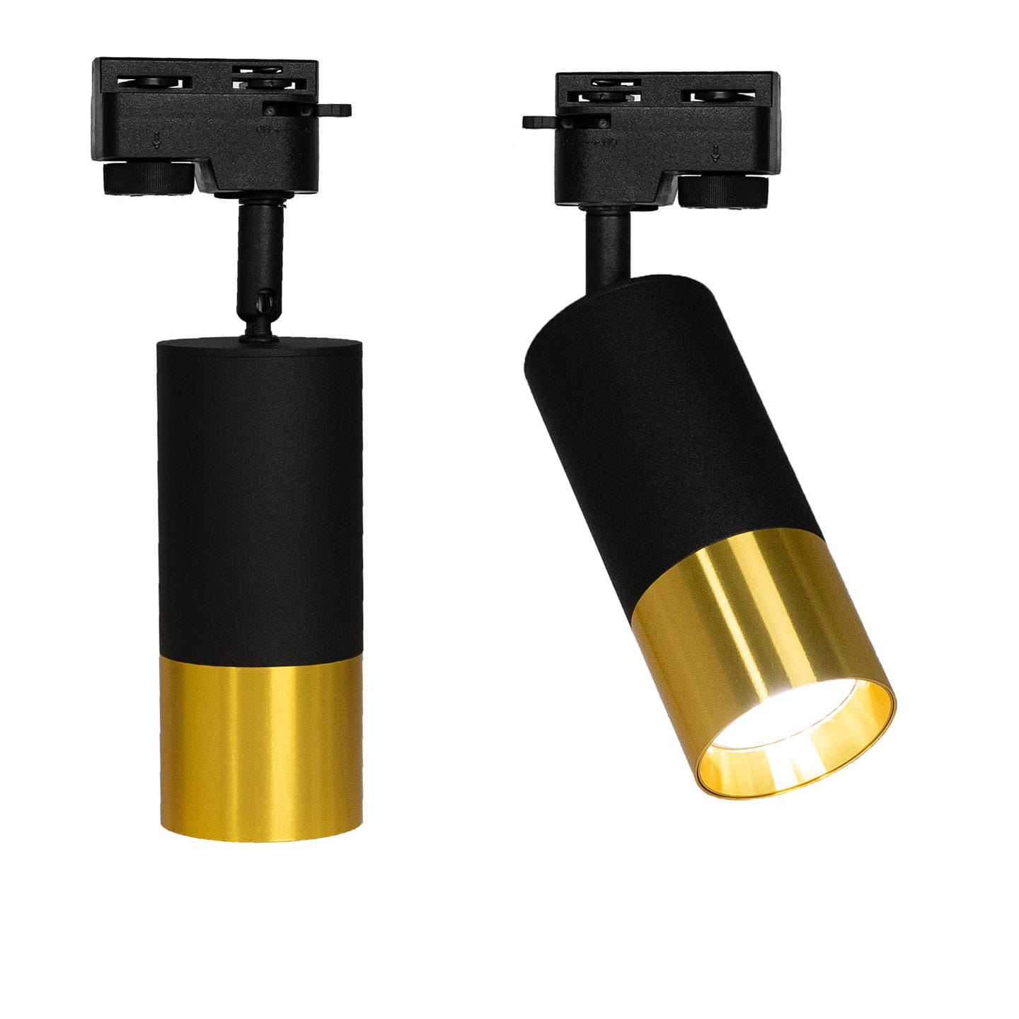 - 3 x lampa szynowa na żarówkę GU10 jednofazowa czarno-złota
