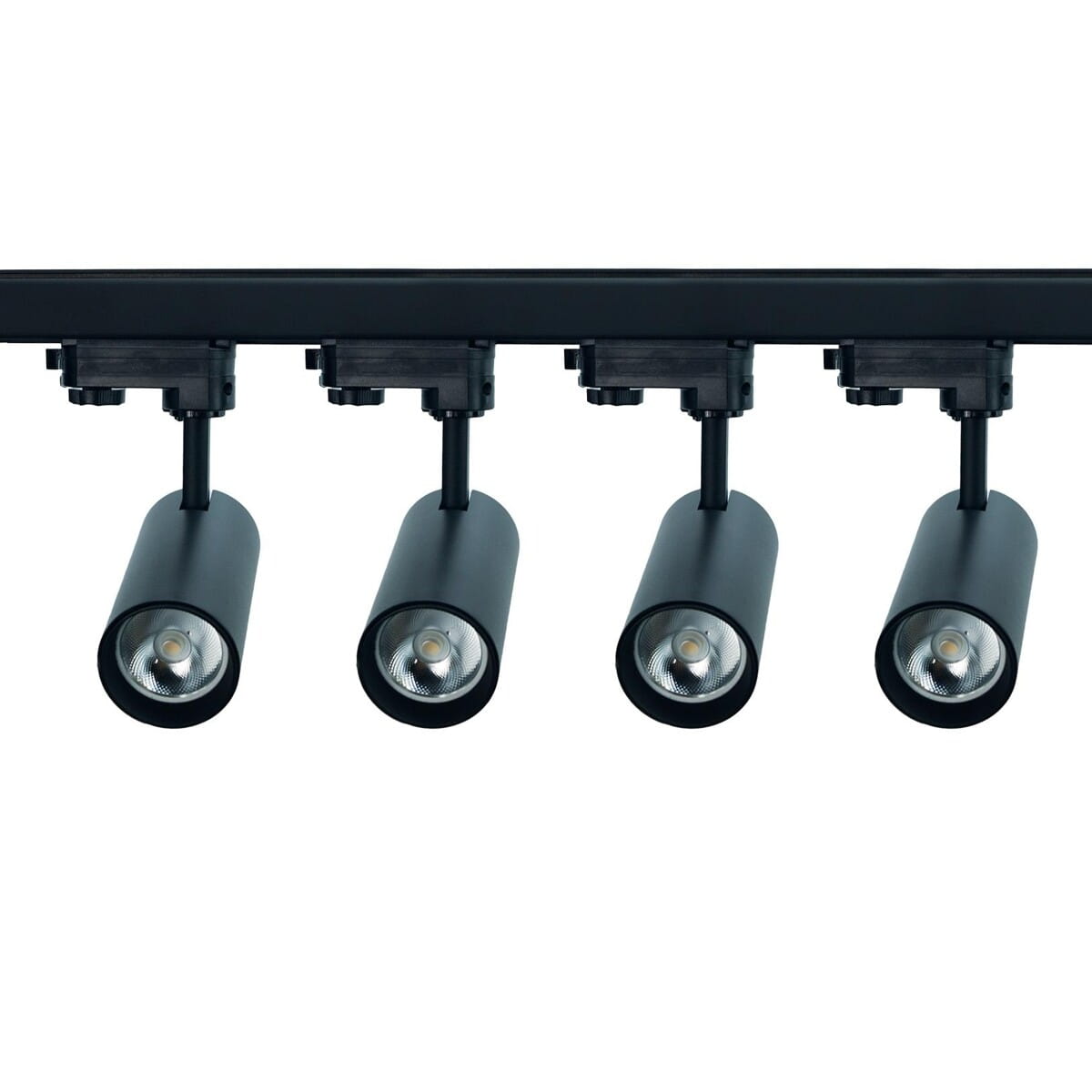 4 x Lampa na szynoprzewód czarna LONGO 3F + dwie szyny 1m + łącznik zasilający