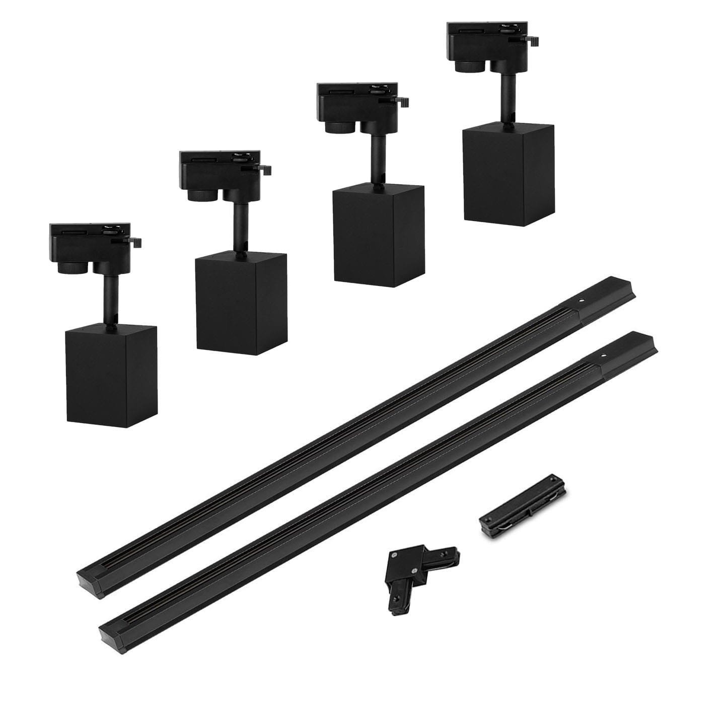 4 x Reflektor szynowy sześcian LED GU10 czarny + 2 x szyna 1m + łącznik wybór