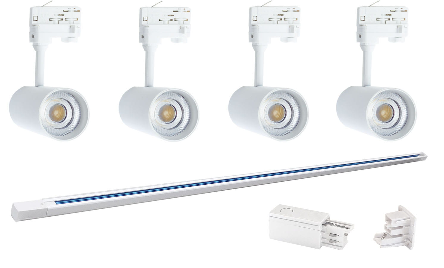 4 x reflektor trójfazowy 25W 4000K + 2 szyny 1m + łącznik