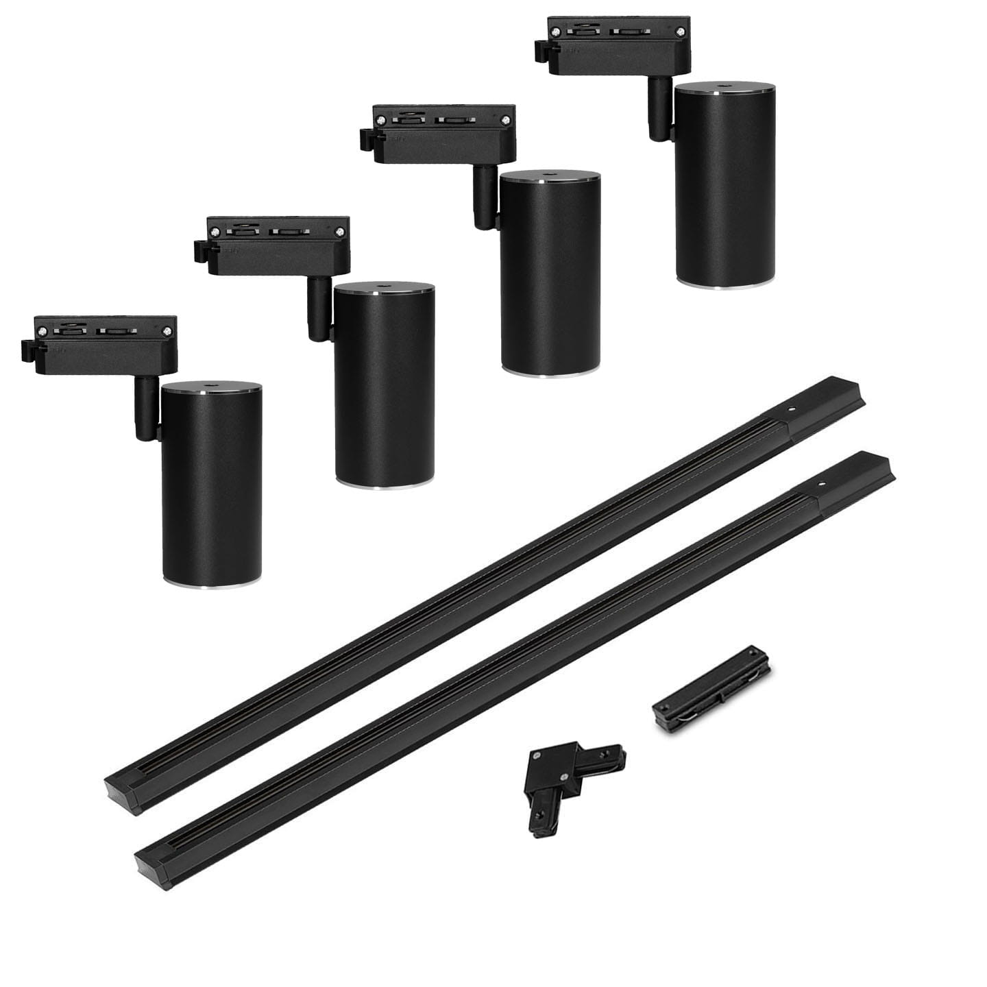4x Lampa szynowa czarno srebrna GU10 1-fazowa + 2 szyny 1m + łącznik wybór
