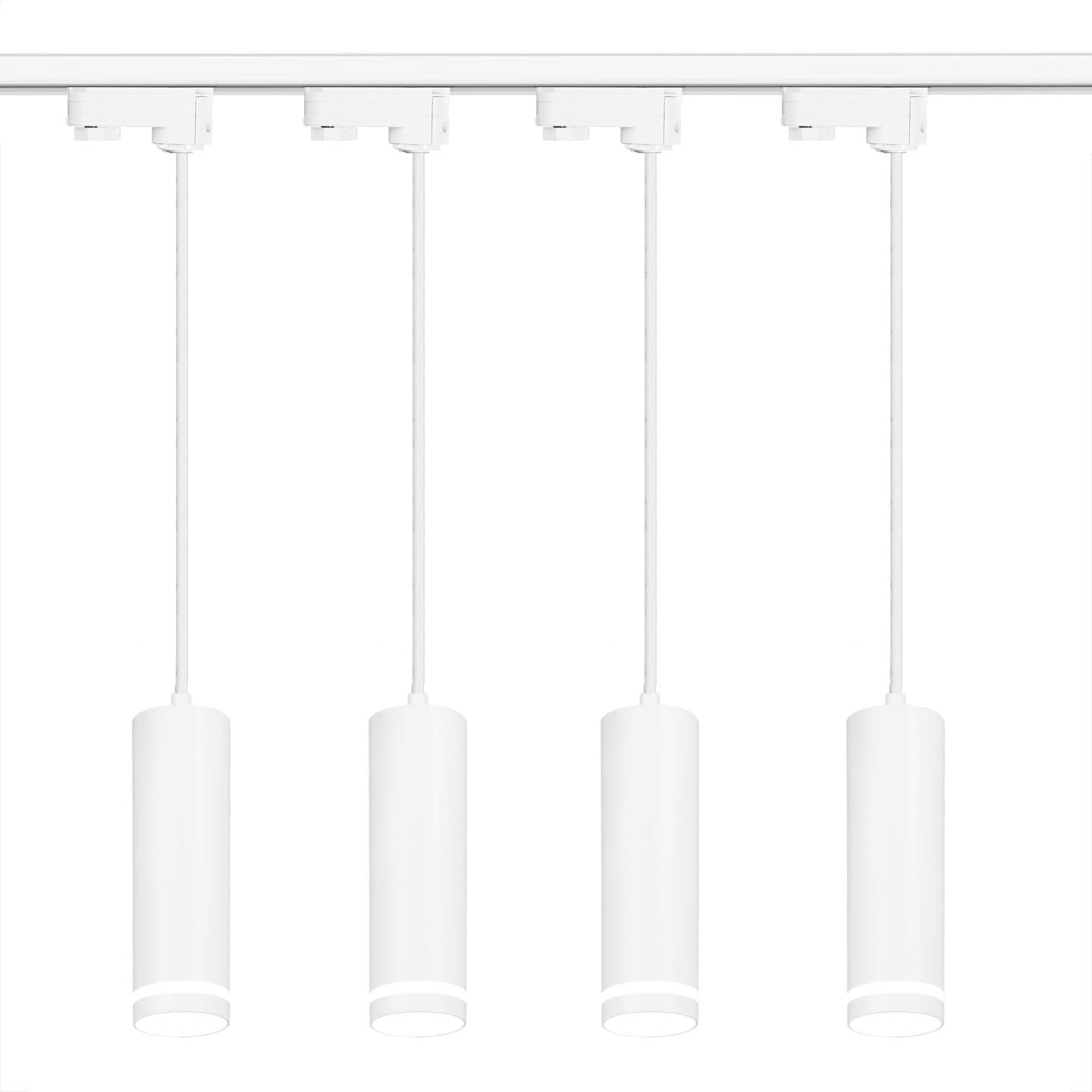 4x Lampa szynowa wisząca PIPE ring biała 3-fazowa + szyny i łącznik do wyboru