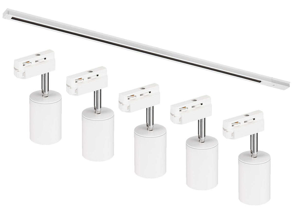 - 5 x lampa szynowa na żarówkę GU10 jednofazowa biała