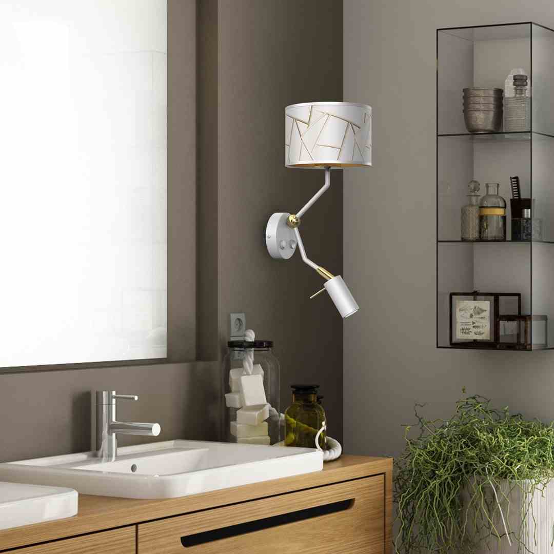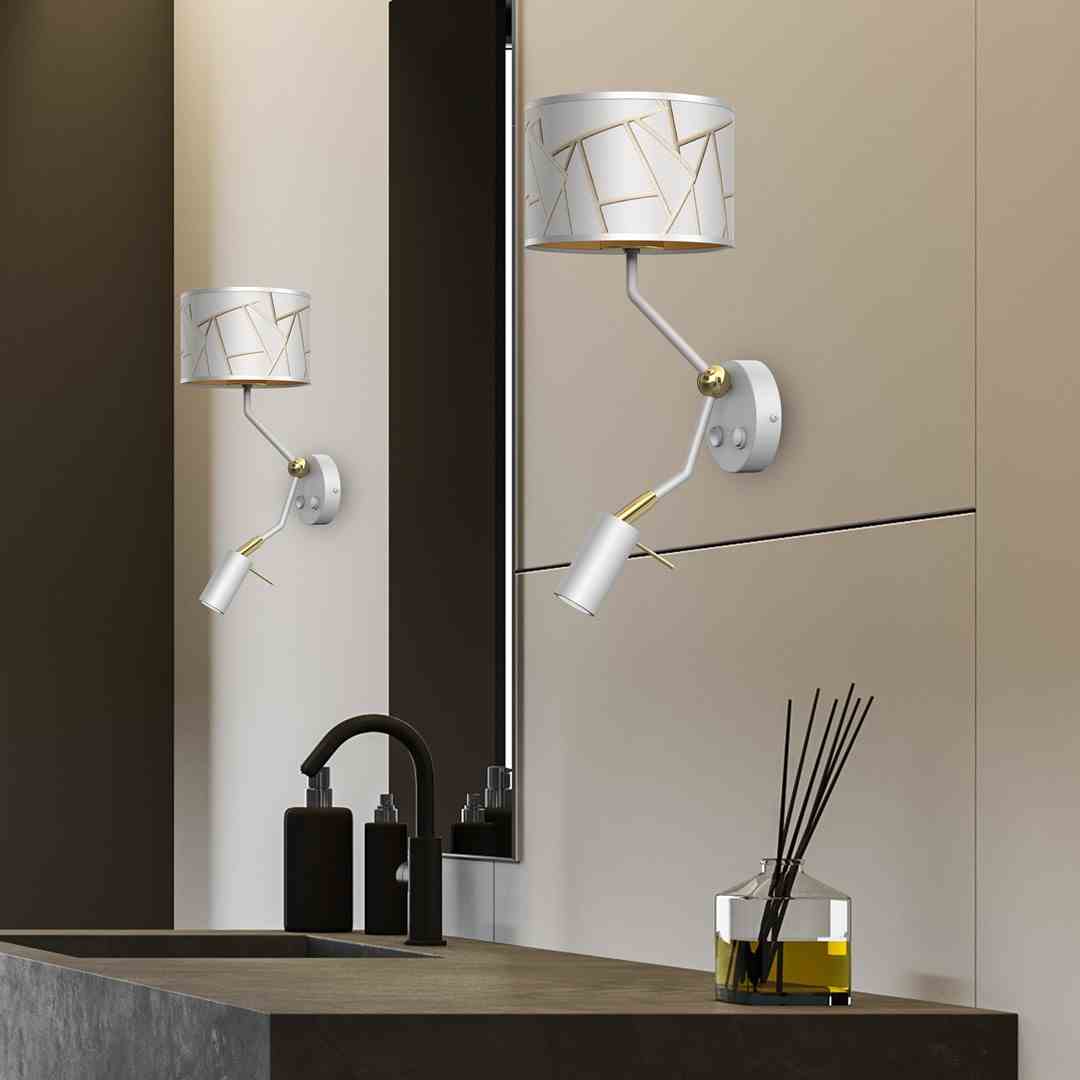 Biało złoty kinkiet z lampką do czytania ZIGGY z wyłącznikiem