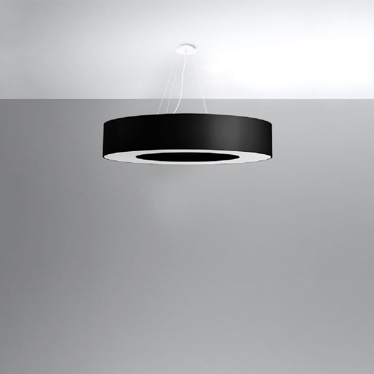 Duży okrągły żyrandol czarny SATURNO 90 cm do stosowania w pomieszczeniach - do salonu, sypialni, jadalni, biura czy pokoju. Klasyczny i elegancki zarazem wygląd. 90 cm średnicy i aż 8 źródeł światła z popularnym gwintem E27. Możliwość regulacji zawiesia. Solidne wykonanie - materiałowe obicie oraz stalowa konstrukcja.
