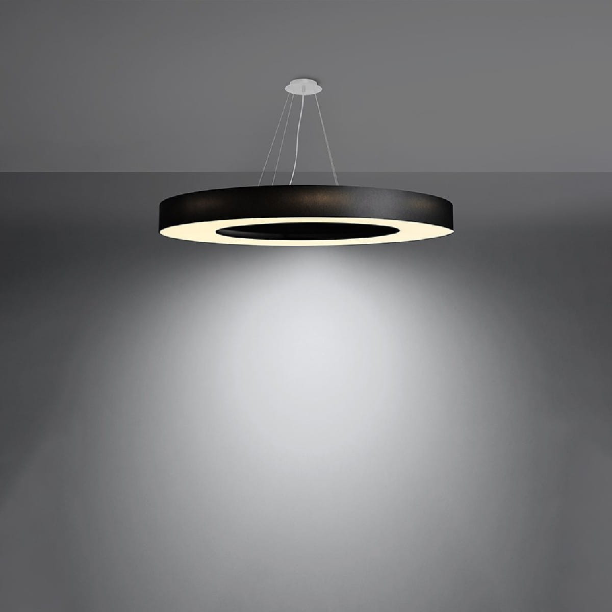 - Możliwość regulacji zawiesia - wybierz, czy chcesz aby duży okrągły żyrandol czarny SATURNO SLIM 90 cm wisiał wyżej czy niżej