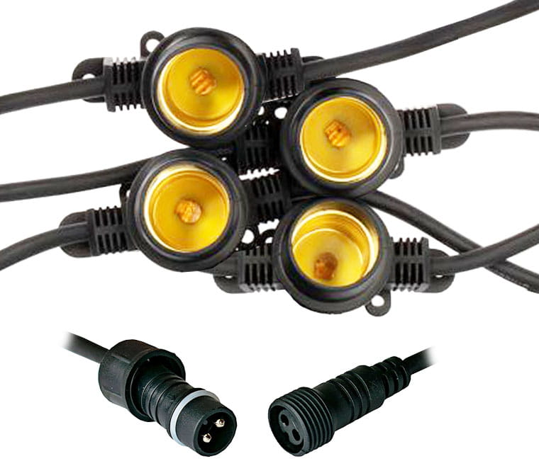 Jeśli długość 10m okaże się zbyt mała- możesz bez problemu dołączyć kolejną girlandę i stworzyć dłuższą konfigurację- girlanda posiada specjalne gniazdo do bezpośredniego dołączenia kolejnej girlandy. Dwie girlandy = jedna wtyczka do gniazdka.