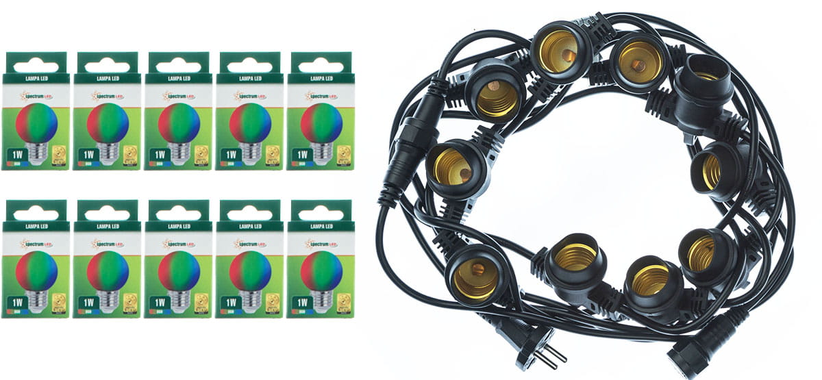 Girlanda ogrodowa 10m czarna + 10 żarówek RGB