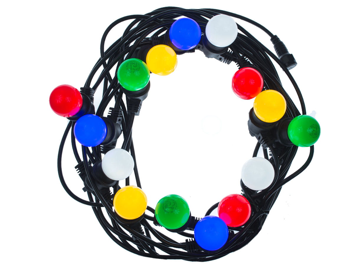Zestaw girlanda 15m czarna + kolorowe żarówki kulki 1W