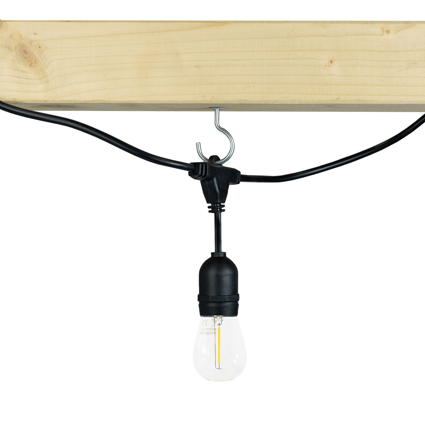-na haczykach wkręconych w elewację, altanę itd- na długości kabla lub przewlekając je przez oczka przy oprawie żarówki