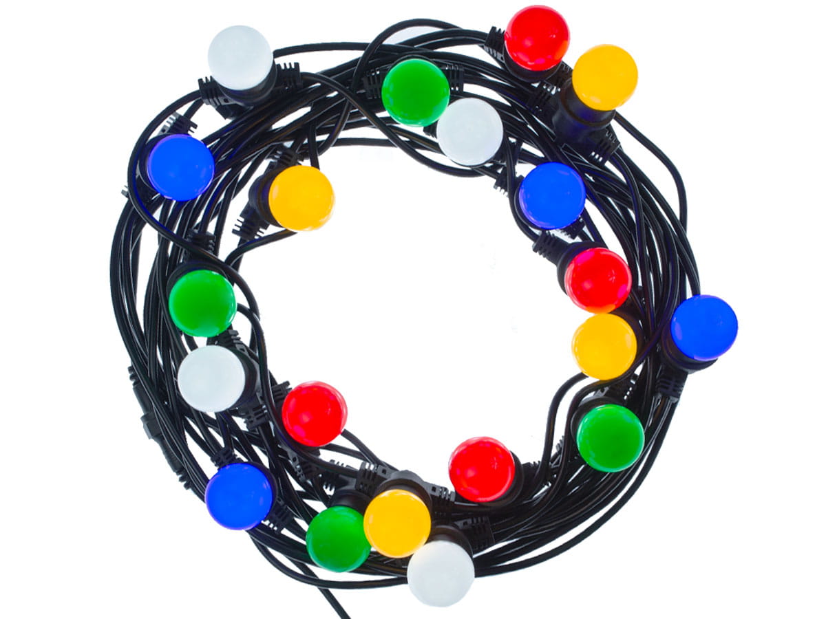Zestaw girlanda 20m czarna + kolorowe żarówki kulki 1W