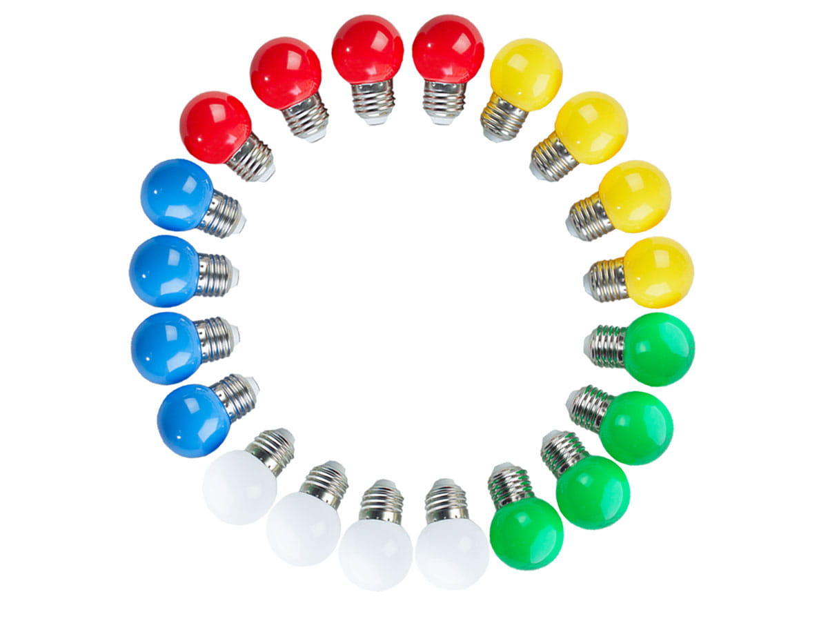- źródło światła: żarówka kulka 1W kolorowa