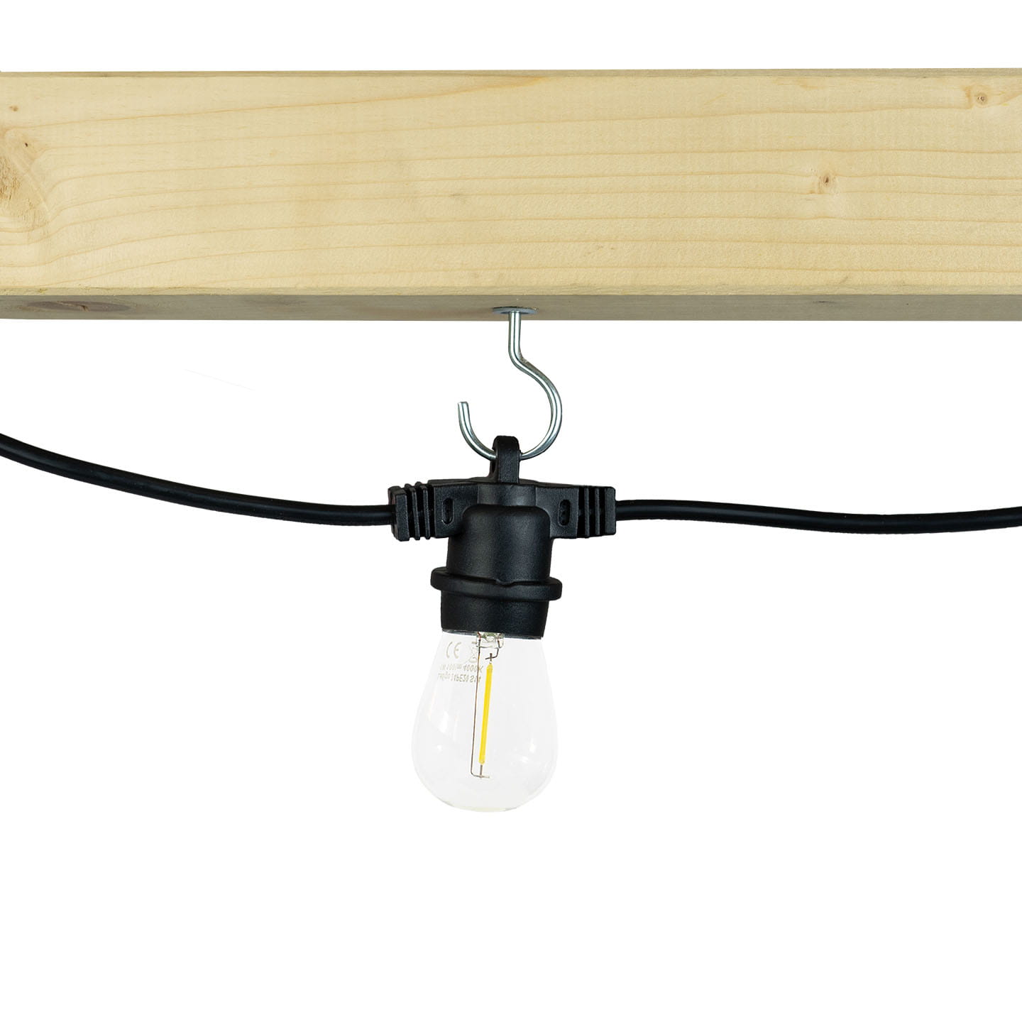 Przewód z oprawkami na żarówki E27 komfortowo podłączysz do gniazdka w ścianie dzięki wtyczce która znajduje się na kablu zasilającym.