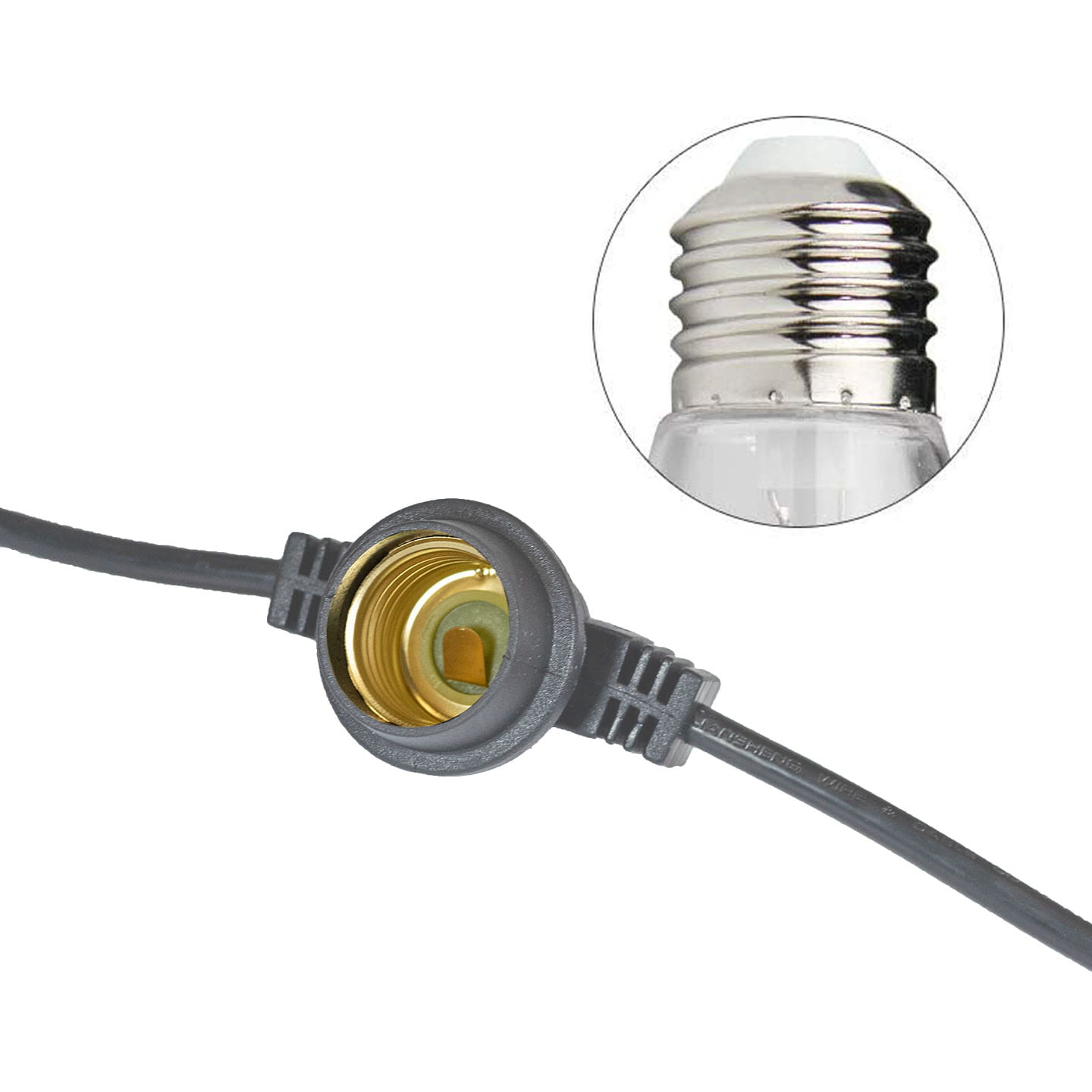 Przewód z oprawkami na żarówki E27 komfortowo podłączysz do gniazdka w ścianie dzięki wtyczce która znajduje się na kablu zasilającym.