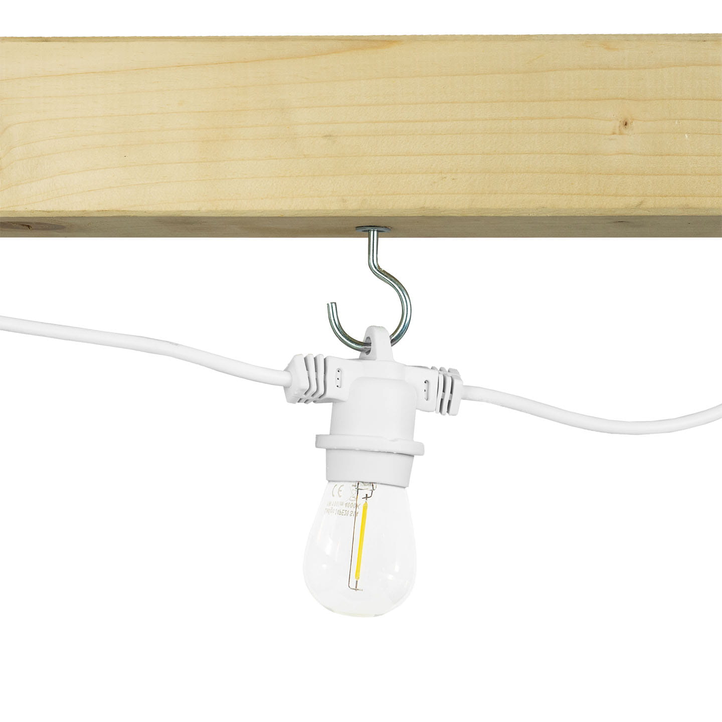 - na haczykach wkręconych w elewację, altanę - na długości kabla lub przewlekając je przez oczka nad oprawą żarówki