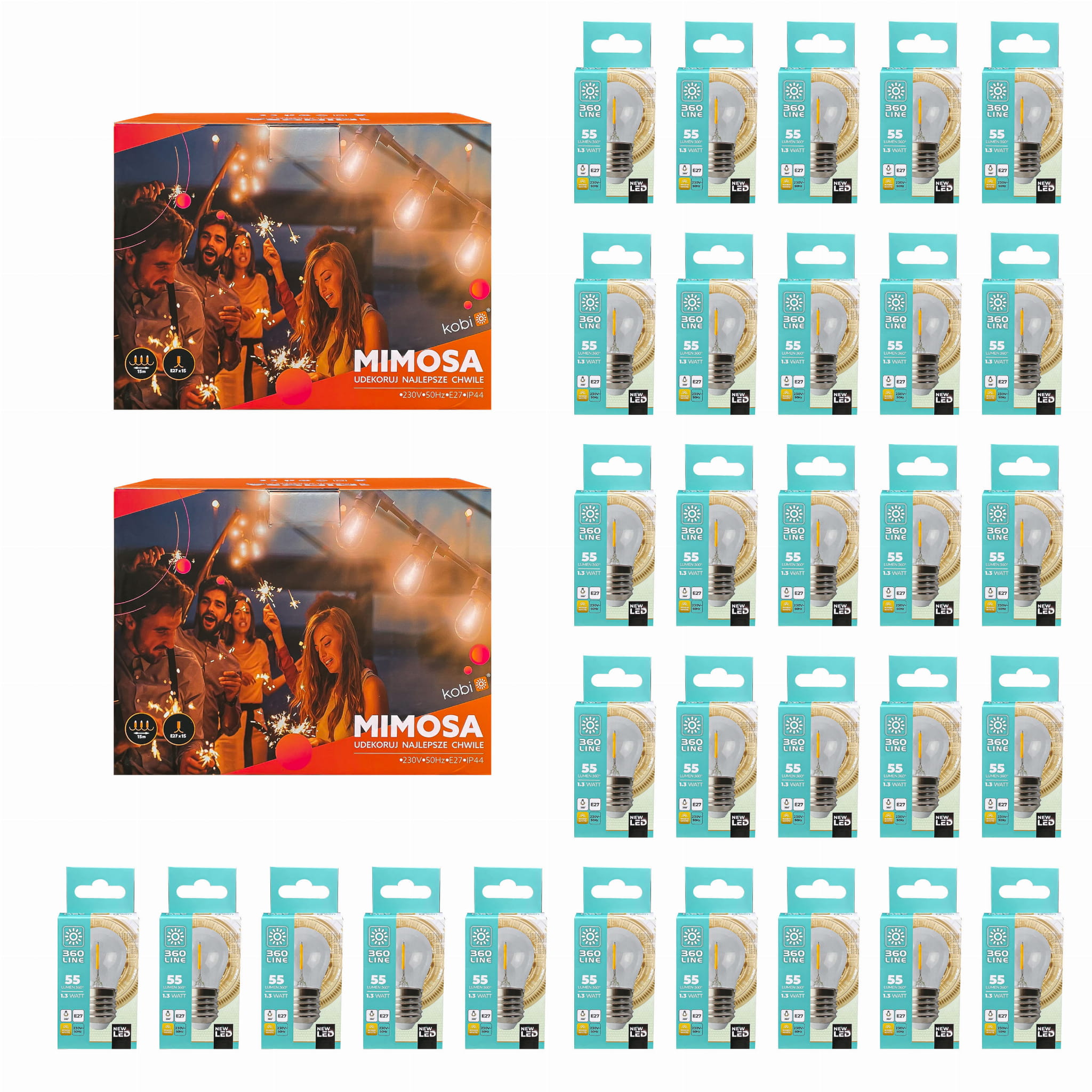 - 30 żarówek LED E27 filament 1,3W 2700K