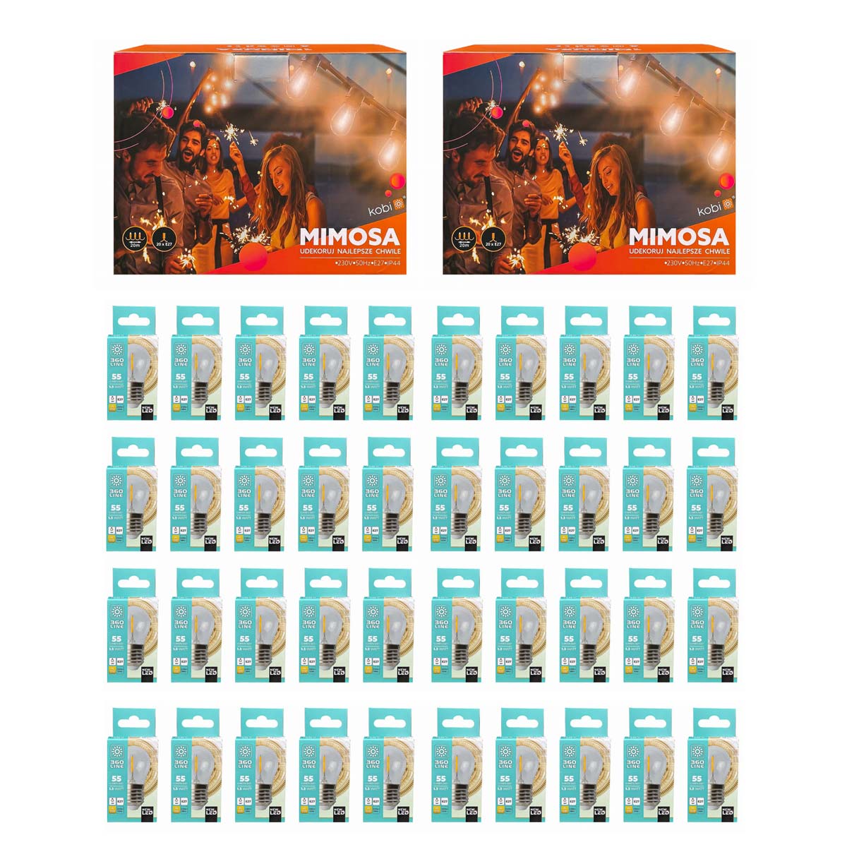 - 40 żarówek LED E27 filament 1,3W 2700K