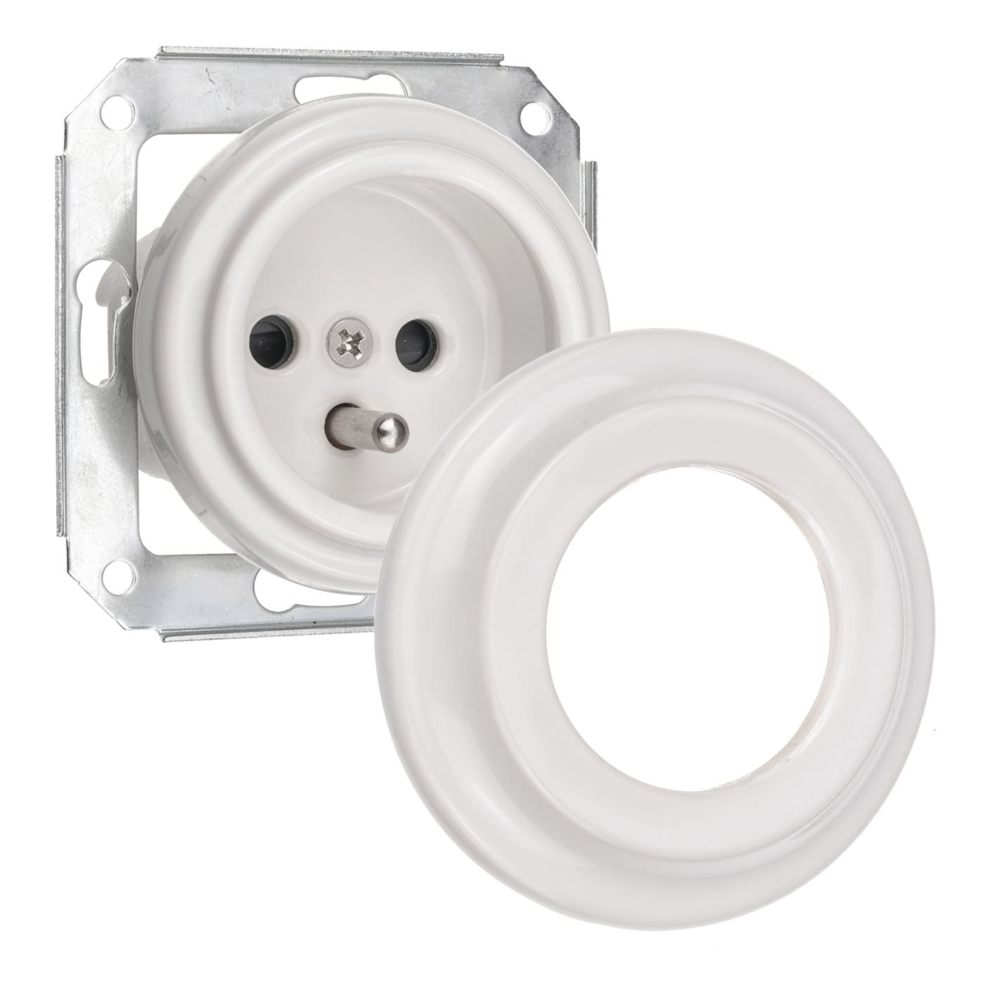 Gniazdko ceramiczne podtynkowe białe z uziemieniem