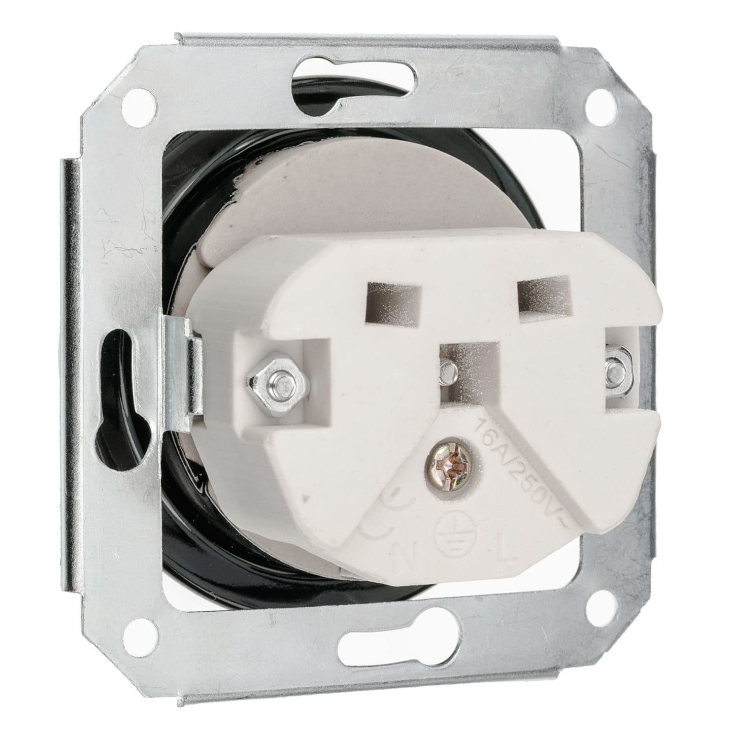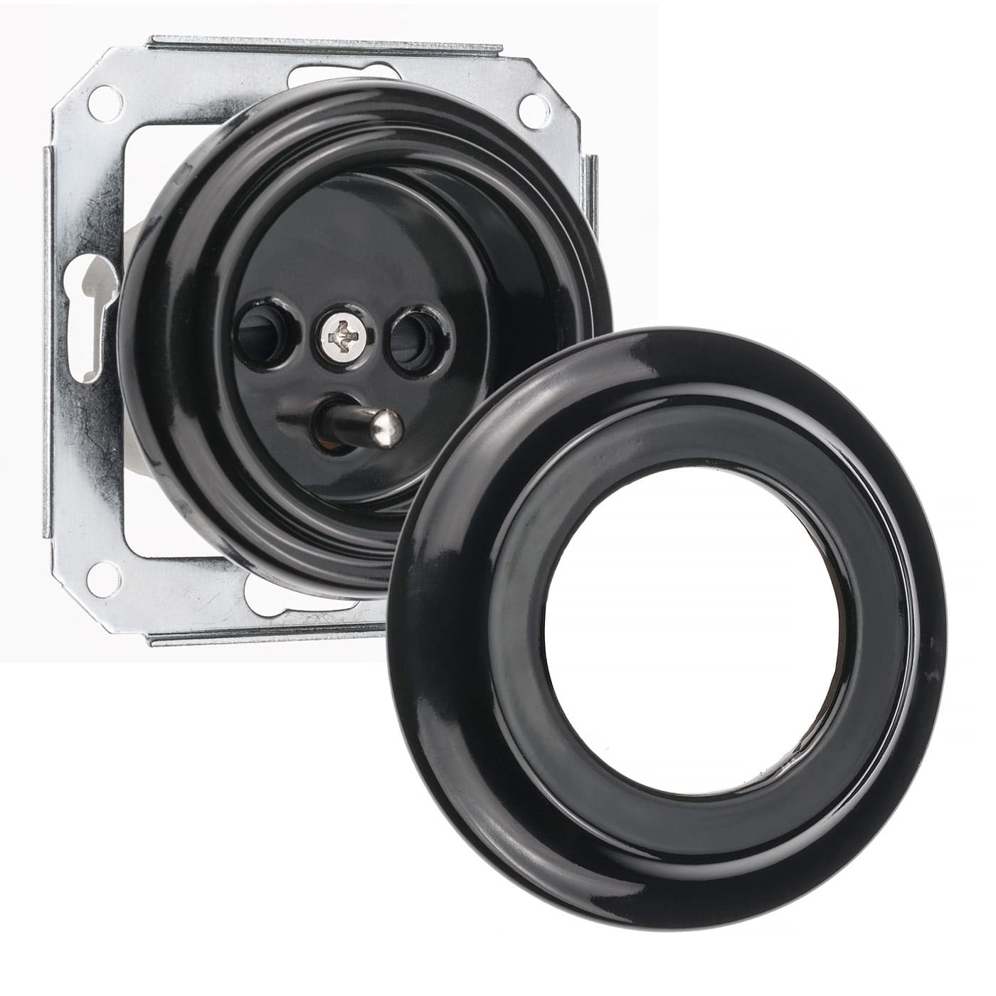 Czarne ceramiczne gniazdko podtynkowe z uziemieniem
