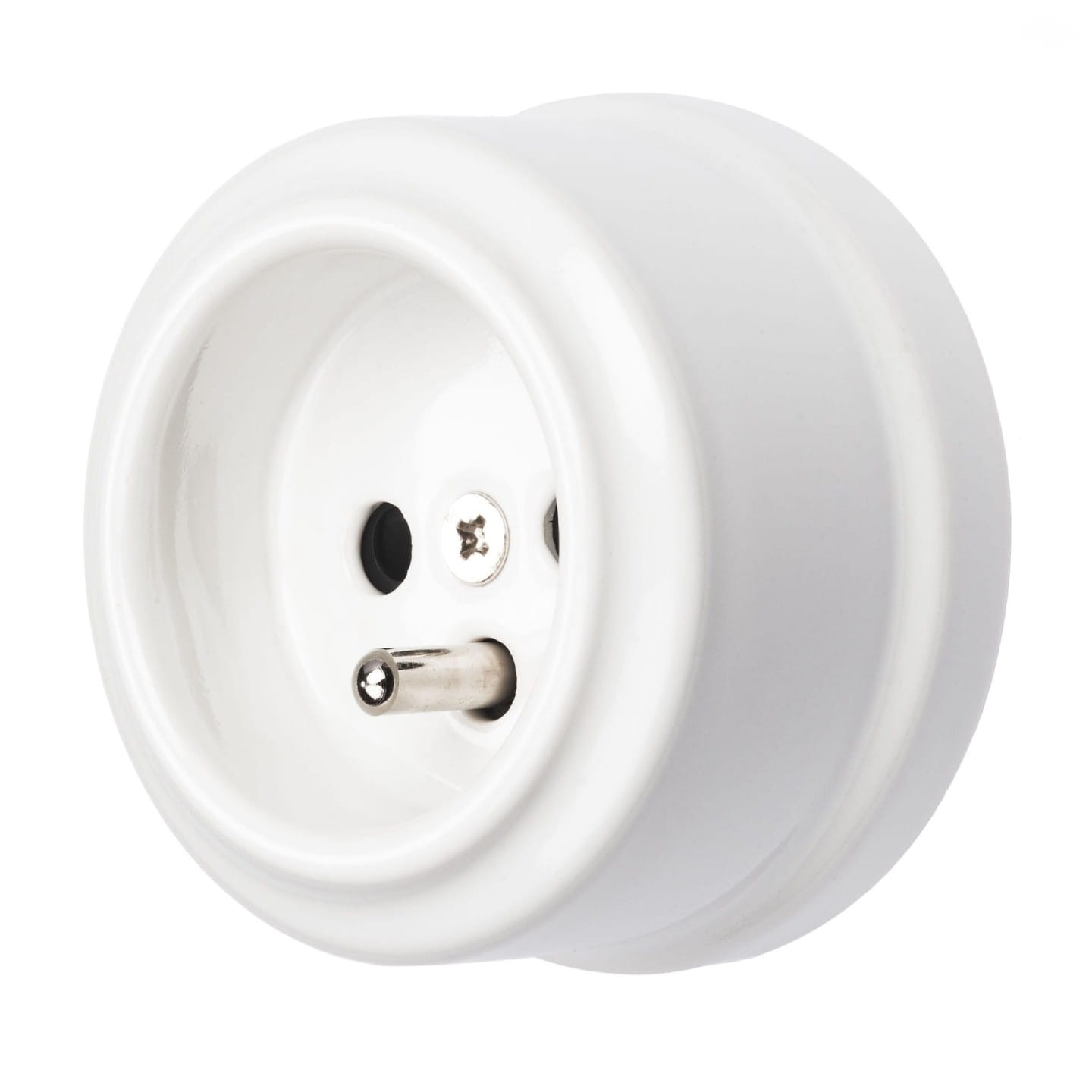 Gniazdko elektryczne ceramiczne białe natynkowe z uziemieniem
