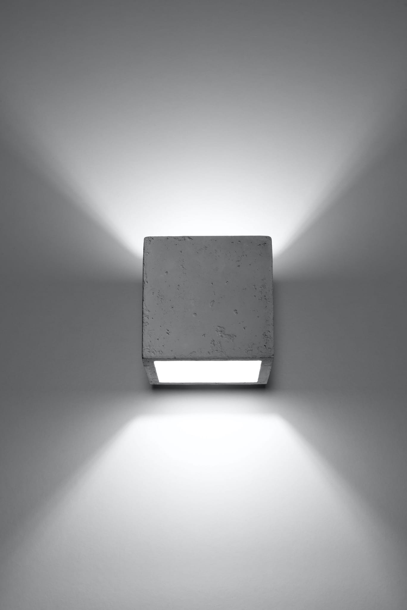 Wyjątkowy kinkiet wewnętrzny góra dół QUAD w kształcie kwadratu wykonany z lekkiej masy gipsowo-cementowej, co przekłada się na prosty montaż. Wizualnie kinkiet betonowy QUAD do złudzenia przypomina prawdziwy beton. Dzięki temu oferowany model świetnie prezentuje się w industrialnych i loftowych aranżacjach. Światło emitowane przez kinkiet rozchodzi się obustronnie, co przekłada się na zjawiskowy efekt dekoracyjny.