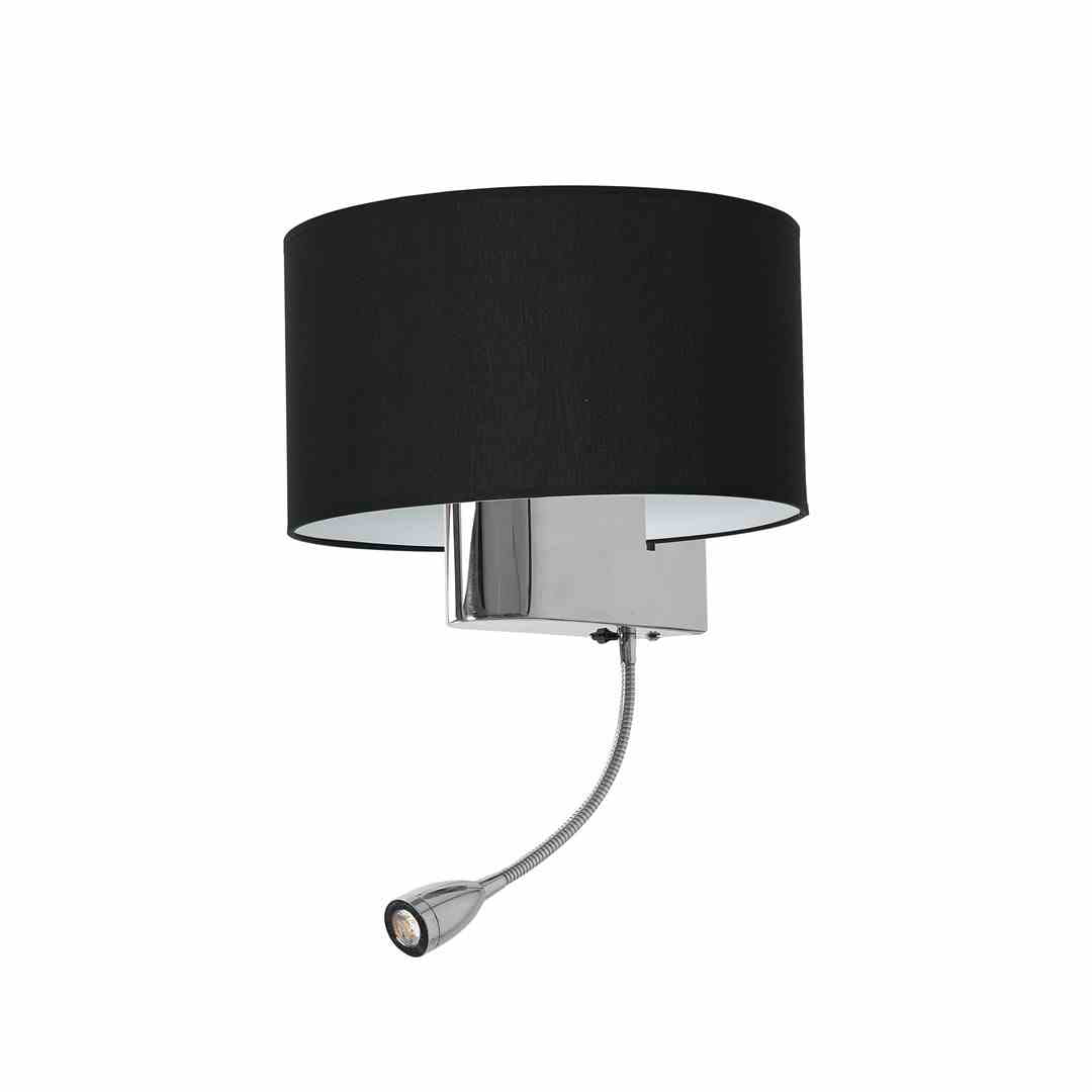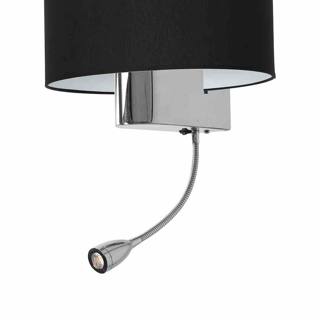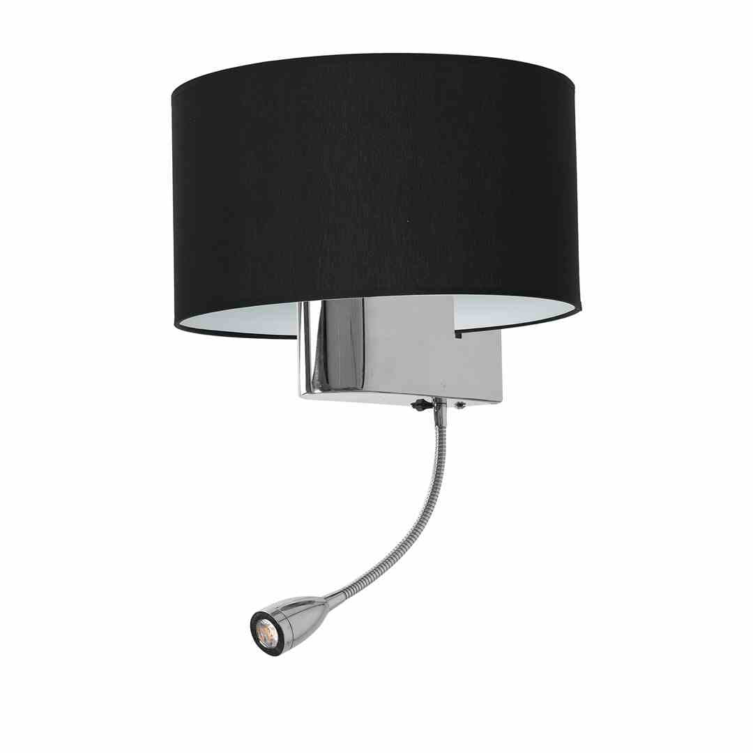Kinkiet do sypialni z lampką do czytania 1W z włącznikiem CASINO czarny chrom Kinkiet z włącznikiem z czarnym abażurem CASINO