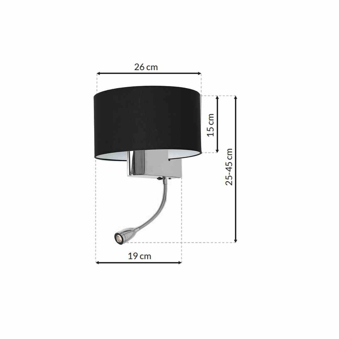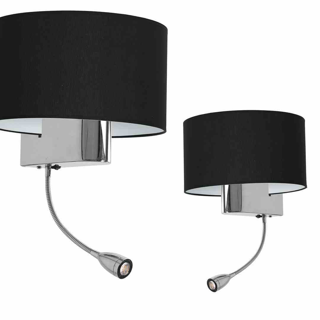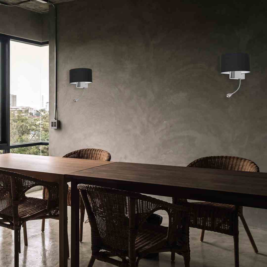 Kinkiet do sypialni z lampką do czytania 1W z włącznikiem CASINO czarny chrom Kinkiet z włącznikiem z czarnym abażurem CASINO