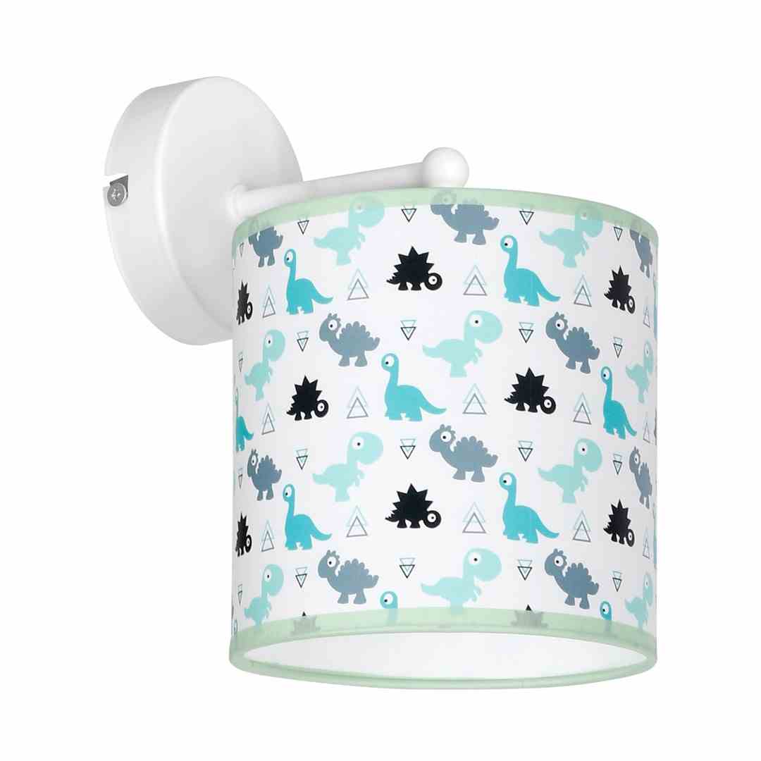 Funkcjonalny kinkiet do pokoju dziecięcego z pięknym motywem kolorowych dinozaurów. Jeśli Twoje dziecko interesuje się prehistorią, z pewnością doceni tę lampkę! Kinkiet możesz zamontować przy łóżku swojej pociechy, aby zawsze mogło włączyć światło gdy zbudzi się w środku nocy. Lampa jest kompatybilna z popularnymi żarówkami E27.
