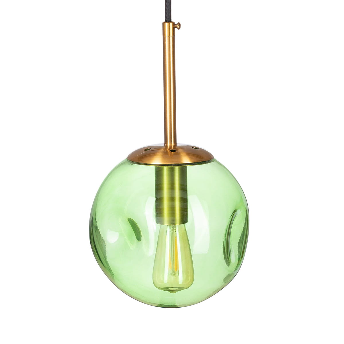 Prezentowany model w kolorze zieleni został wykonany ze szkła i metalu. Klosz jest pół transparentny, dzięki czemu światło zyskuje delikatne przytłumienie. W szkle znajdują się dwa wgłębienia, które nadają lampie nietuzinkowy charakter.