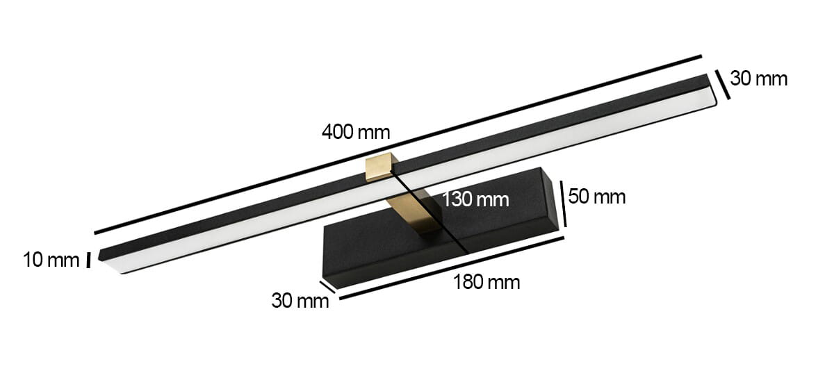 Kinkiet łazienkowy 40 cm czarno-złoty 8W neutralny VENUS to lampa o nowoczesnym wyglądzie. Klasa szczelności to IP44, co w oznacza, że lampa jest odporna na wilgoć i przedostawanie się większych ciał stałych. To idealny wybór do Twojej łazienki! Strumień świetlny wynoszący 580 lm oświetli dokładnie to, co chcesz, a jego neutralna barwa 4200 K sprawi, że Twoja łazienka będzie wyglądać jeszcze lepiej.