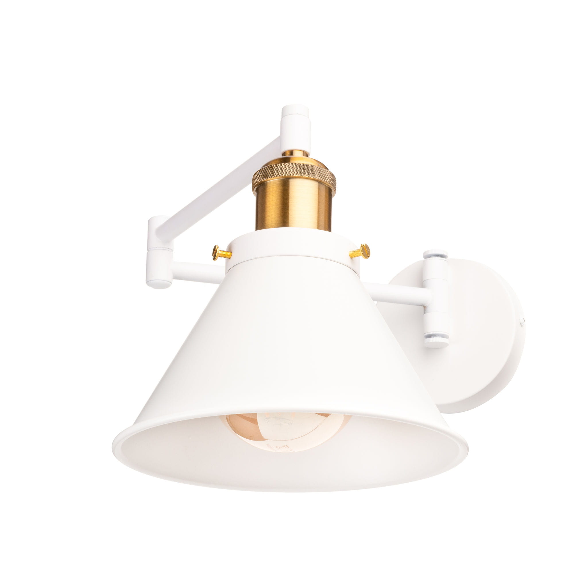 Elegancki Kinkiet na wysięgniku biało złoty loft 1xE27 dodaje charakteru każdemu pomieszczeniu. Regulowany wysięgnik umożliwia perfekcyjne ustawienie oświetlenia według Twoich potrzeb.