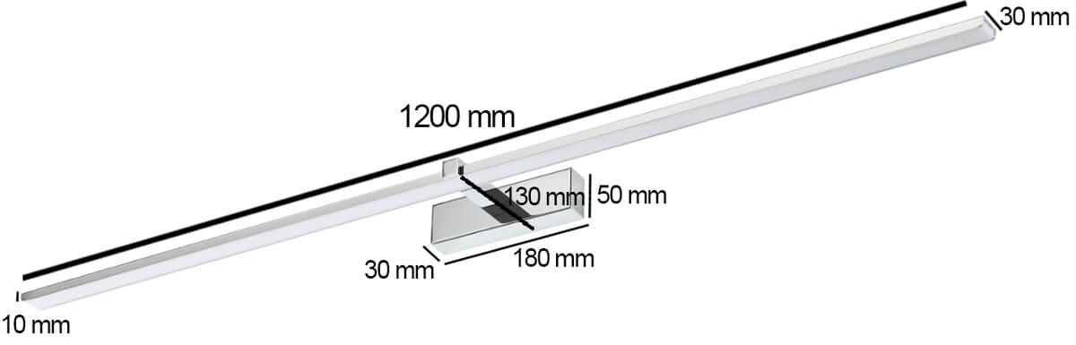 Kinkiet nad lustro 120 cm VENUS to wyjątkowo długa i gustowna lampa, która bez trudu oświetli każde lustro o pokaźnych gabarytach. Jej smukła, chromowana obudowa idealnie wpasowuje się w trend minimalistyczny i skandynawski. Zintegrowane diody LED zapewniają niski pobór energii, bezpieczeństwo użytkowania i optymalne natężenie światła. Kinkiet nad lustro VENUS jest odporny na kontakt z wodą, więc bez przeszkód możesz zamontować go w łazience.
