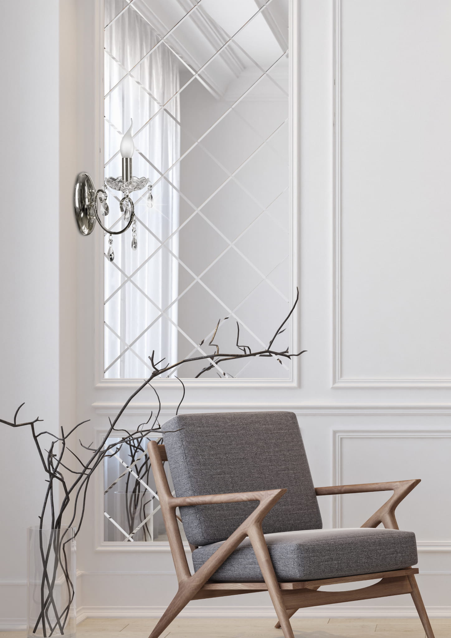 Kinkiet świecznikowy glamour chrom z kryształkami AURORA E14
