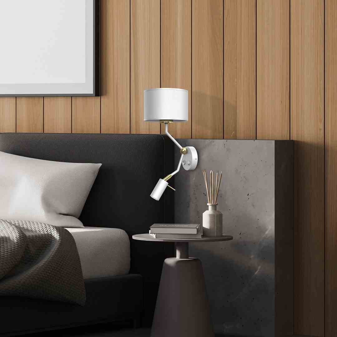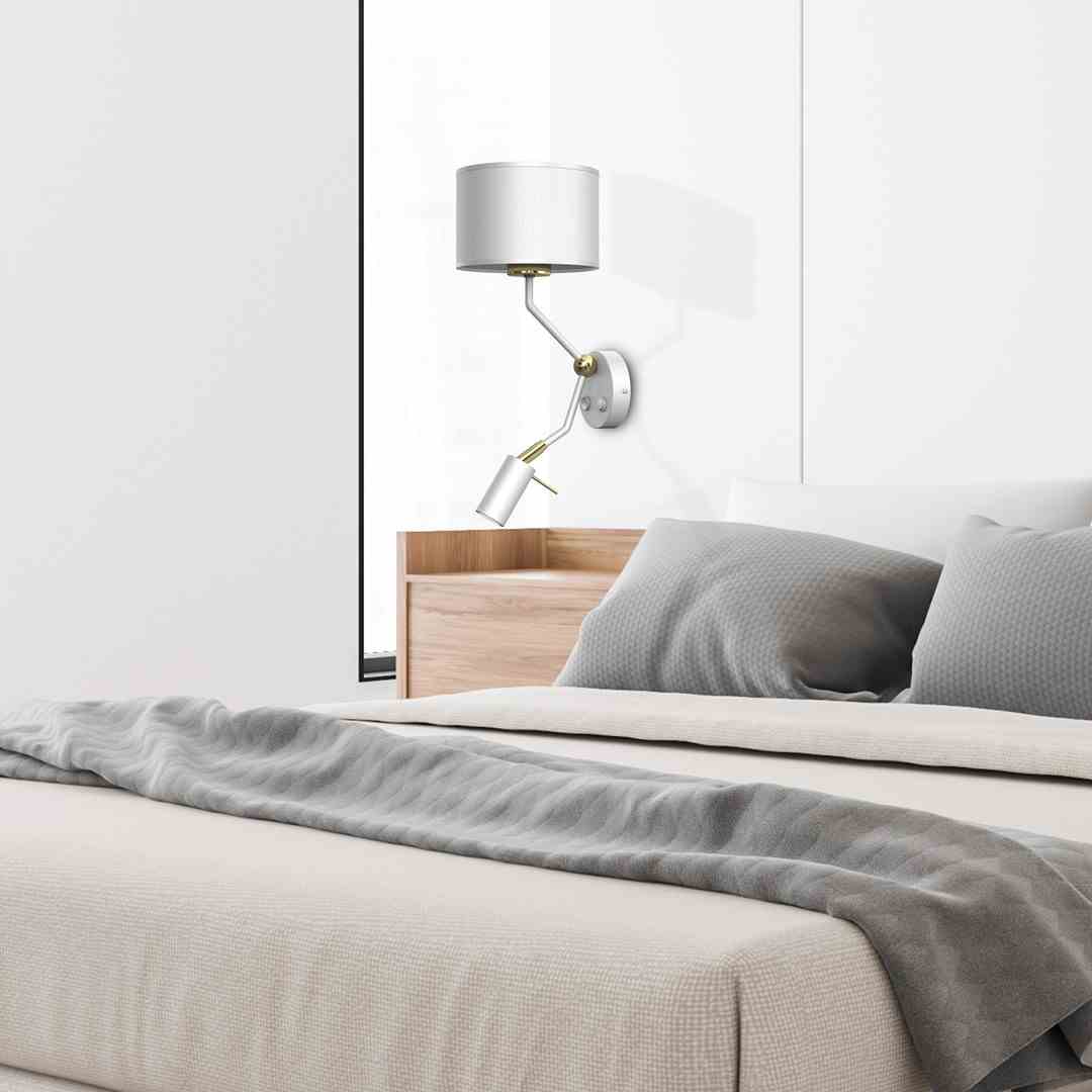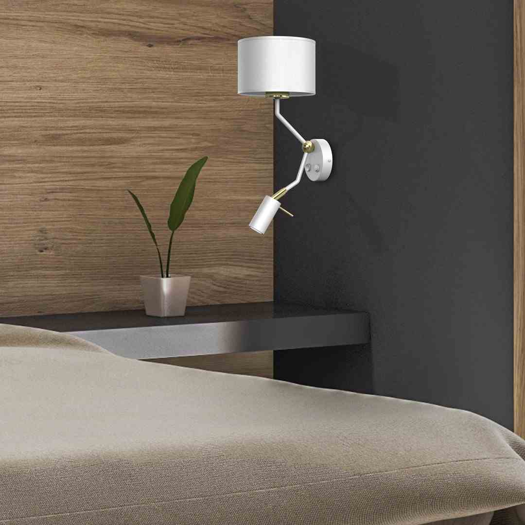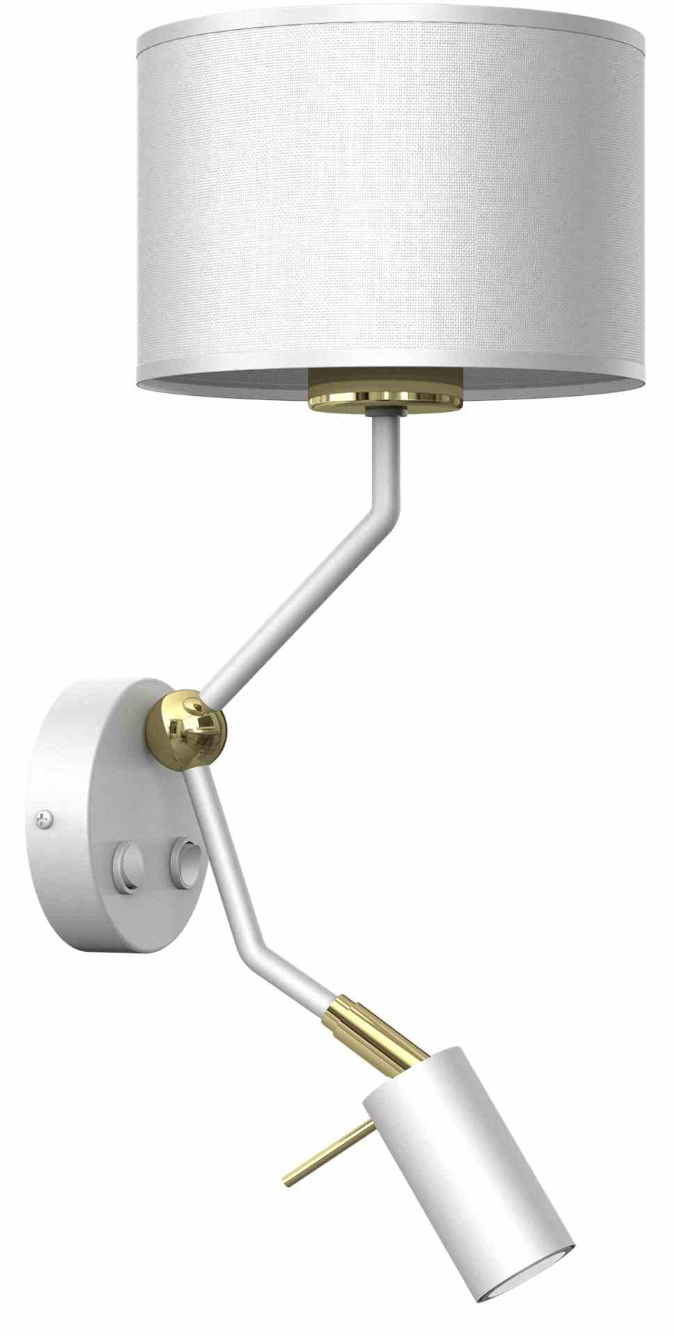 Kinkiet z białym abażurem i lampką do czytania ALBION z włącznikiem