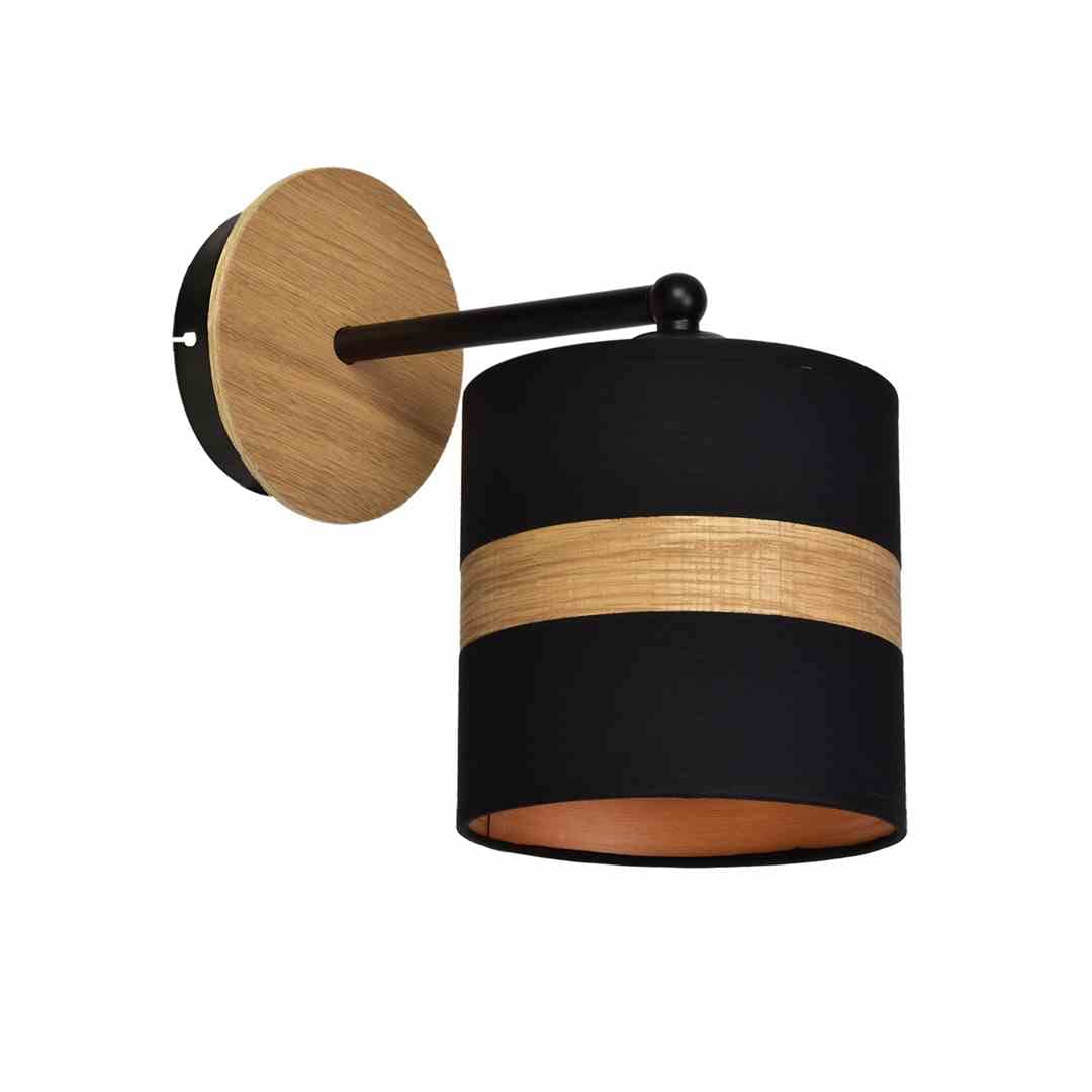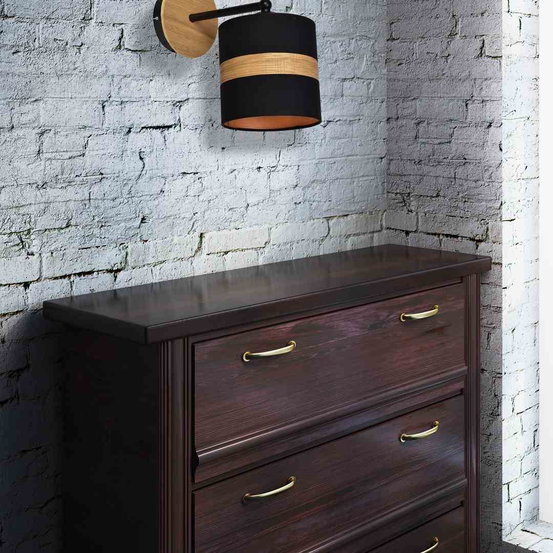 Kinkiet z czarnym abażurem i drewnianym pasem E27 rustykalny