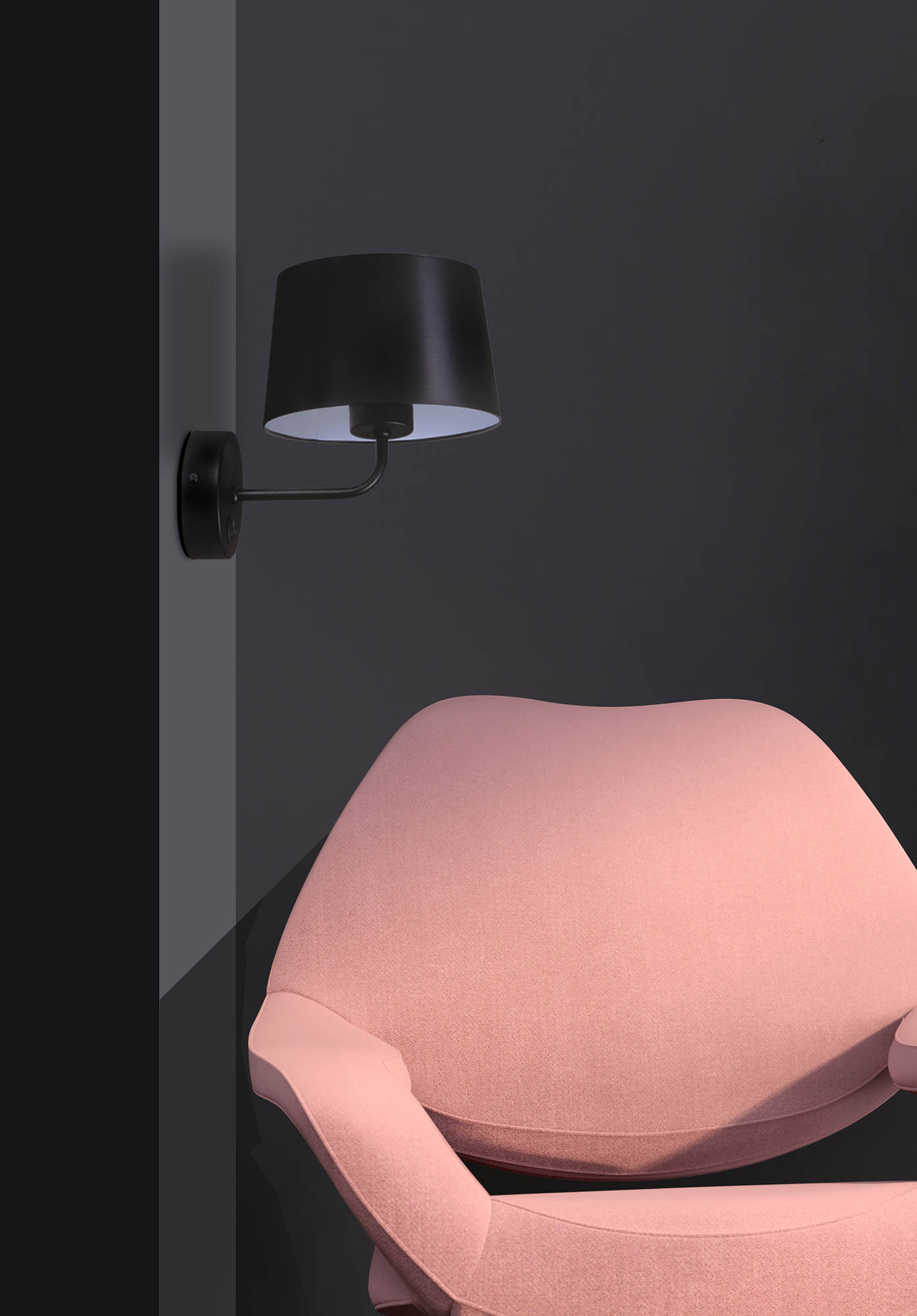Kinkiet z czarnym abażurem i włącznikiem do sypialni E27