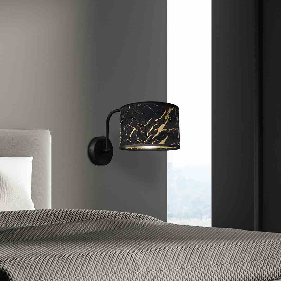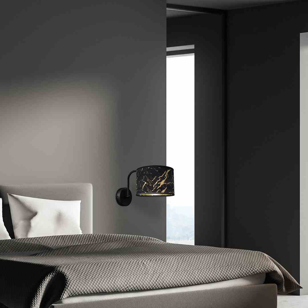 Kinkiet z czarnym abażurem i złotymi akcentami glamour E27 Kinkiet nad łóżko biały z bawełnianym abażurem ALBION