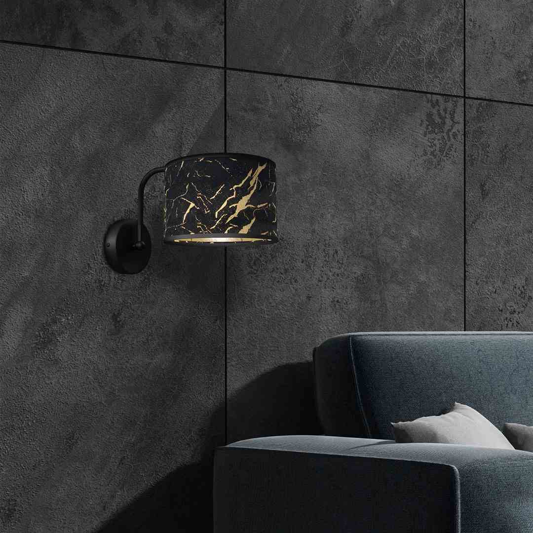 Kinkiet z czarnym abażurem i złotymi akcentami glamour E27 Kinkiet z abażurem czarno-złoty E27 glamour SATINO