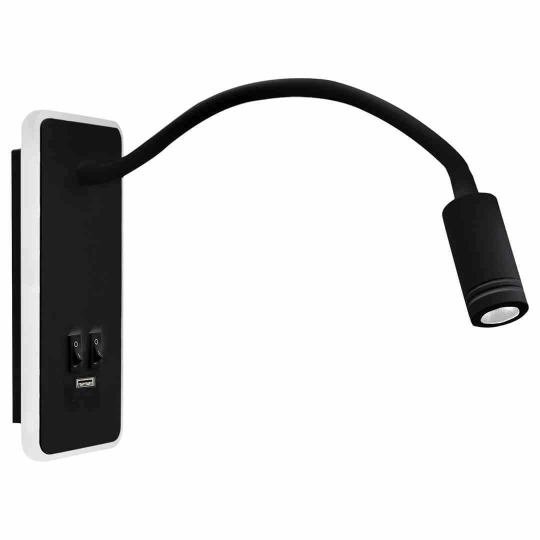 Kinkiet z gniazdem USB czarny elastyczny BASE 4000K
