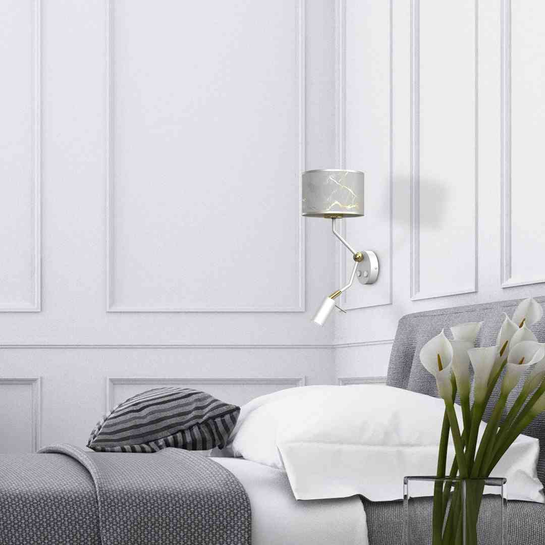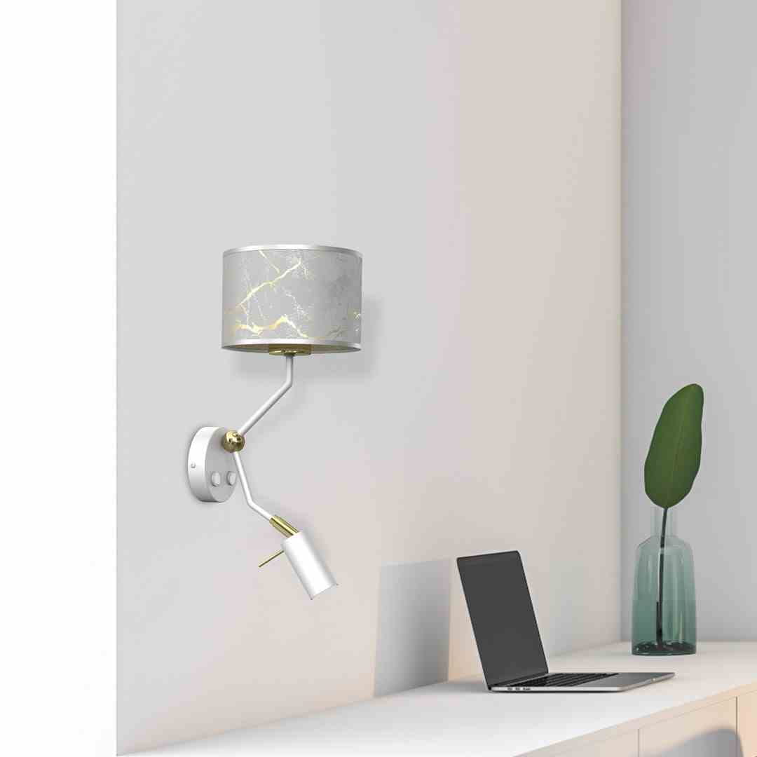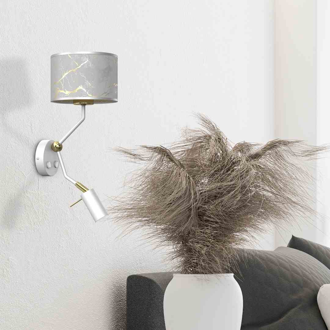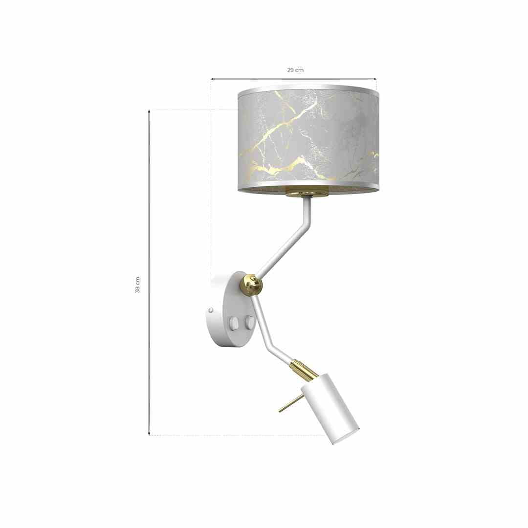 Kinkiet z lampką do czytania biało złoty SENSO z wyłącznikiem