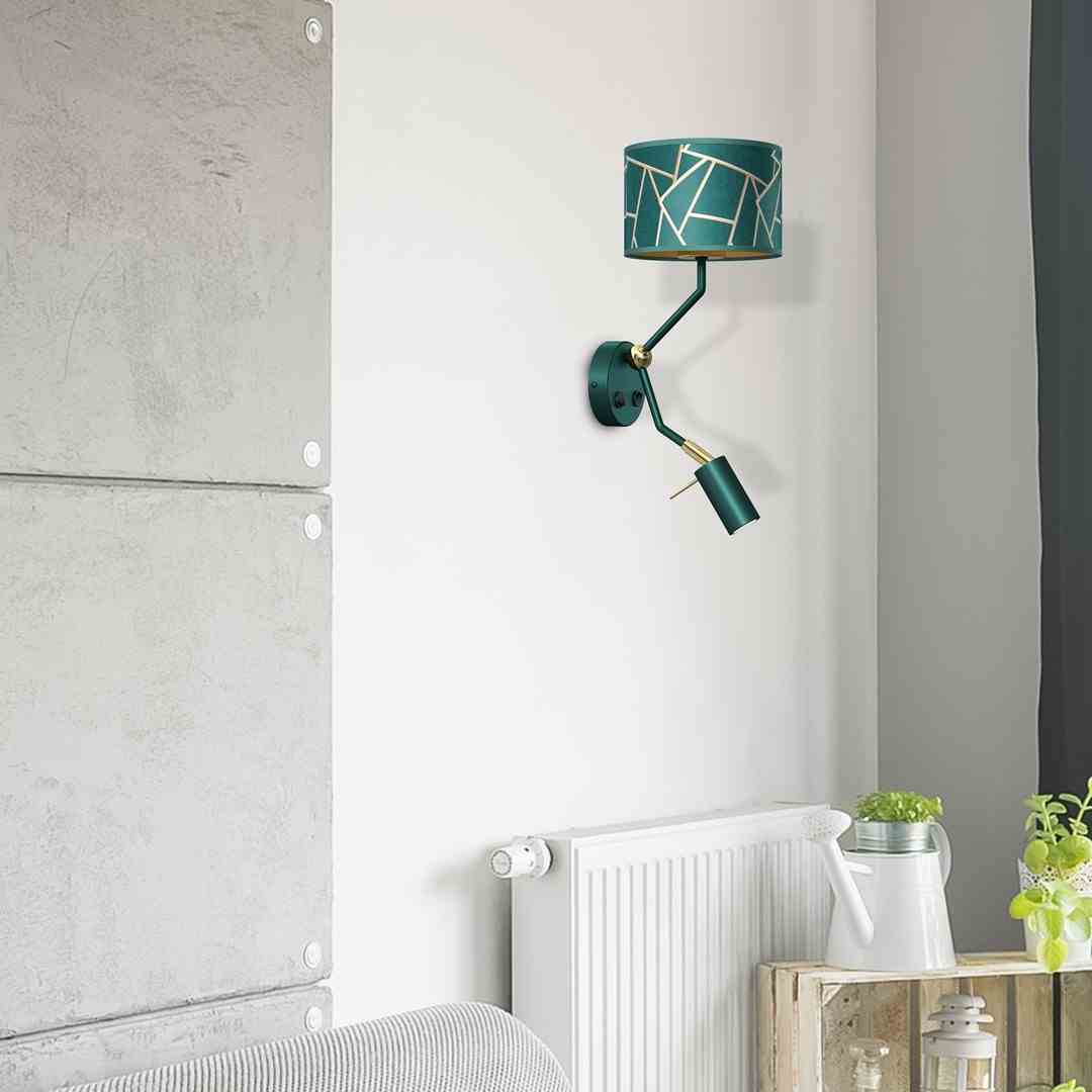 Kinkiet z lampką do czytania z włącznikiem ZIGGY butelkowa zieleń