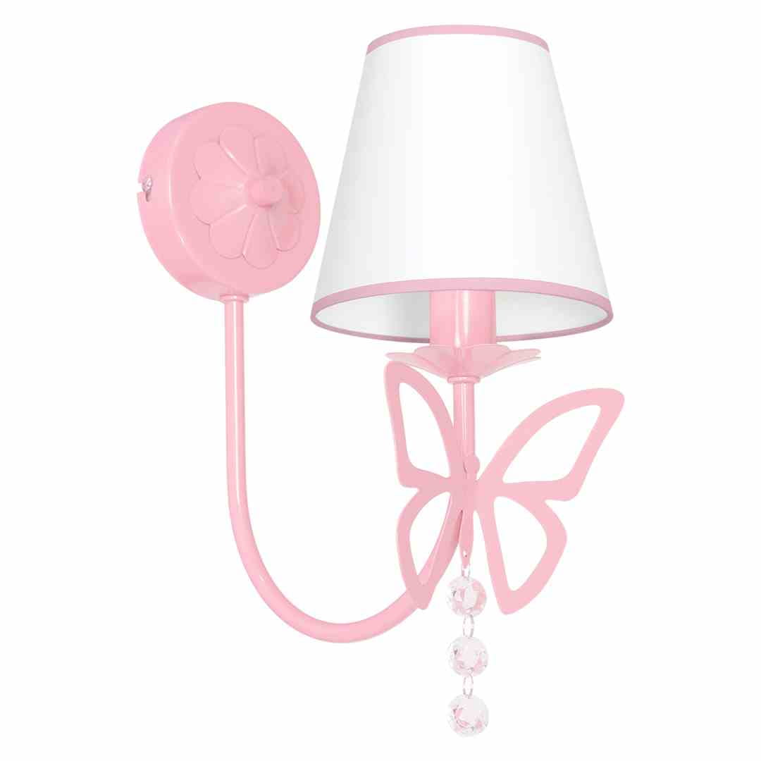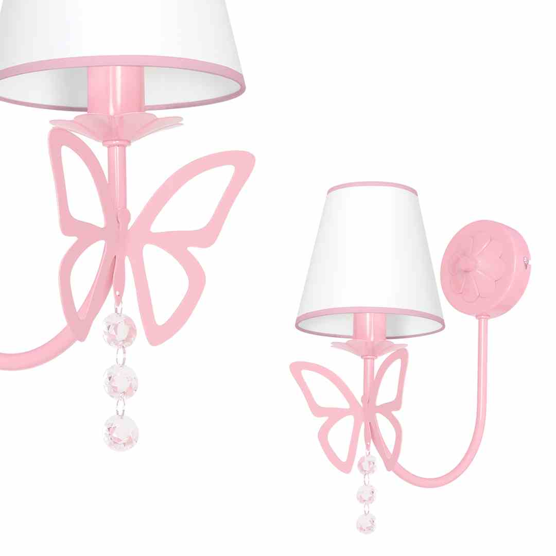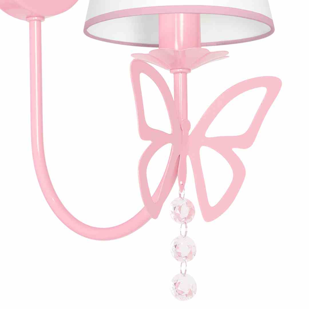 Kinkiet z ozdobnym motylkiem białym abażurem i kryształkami E14