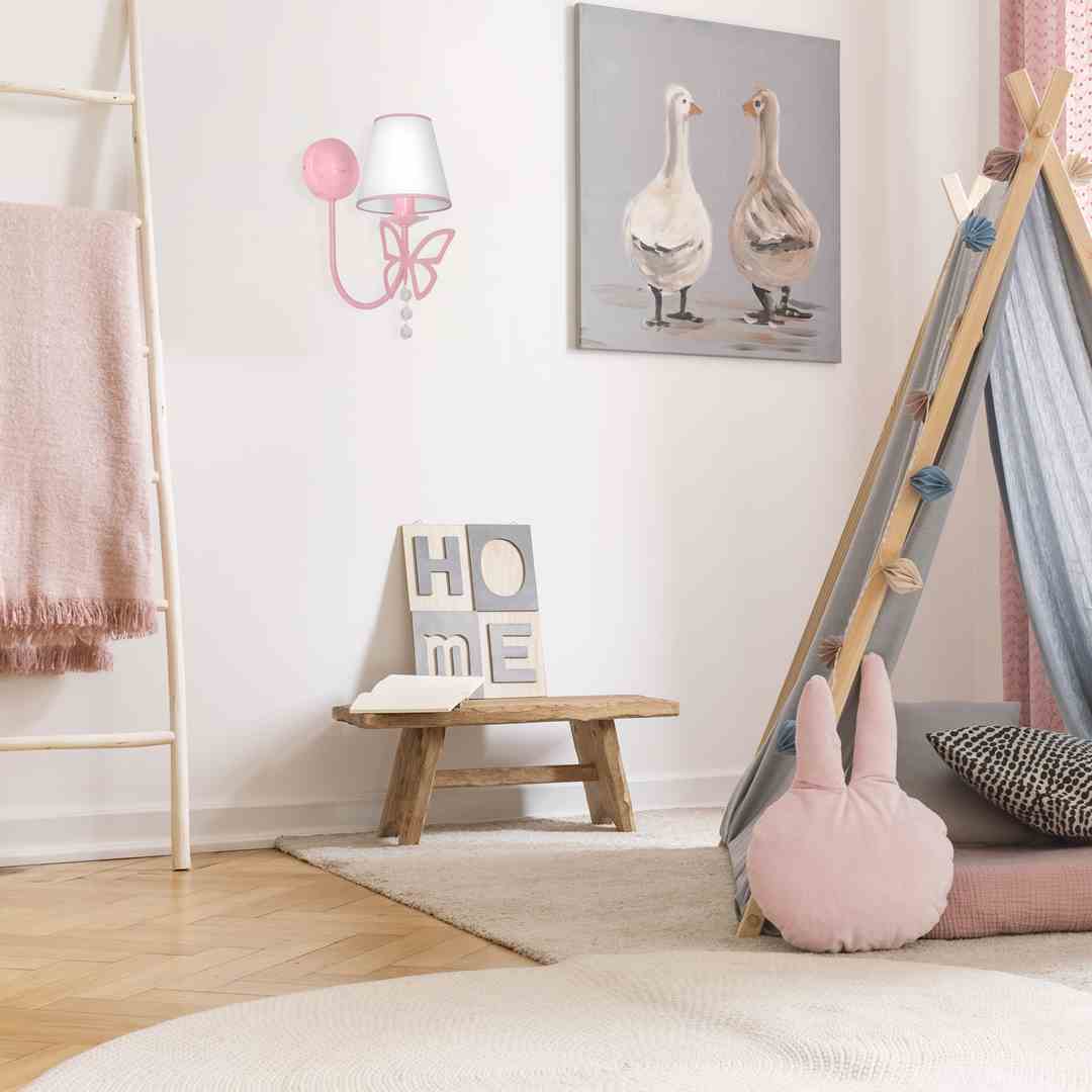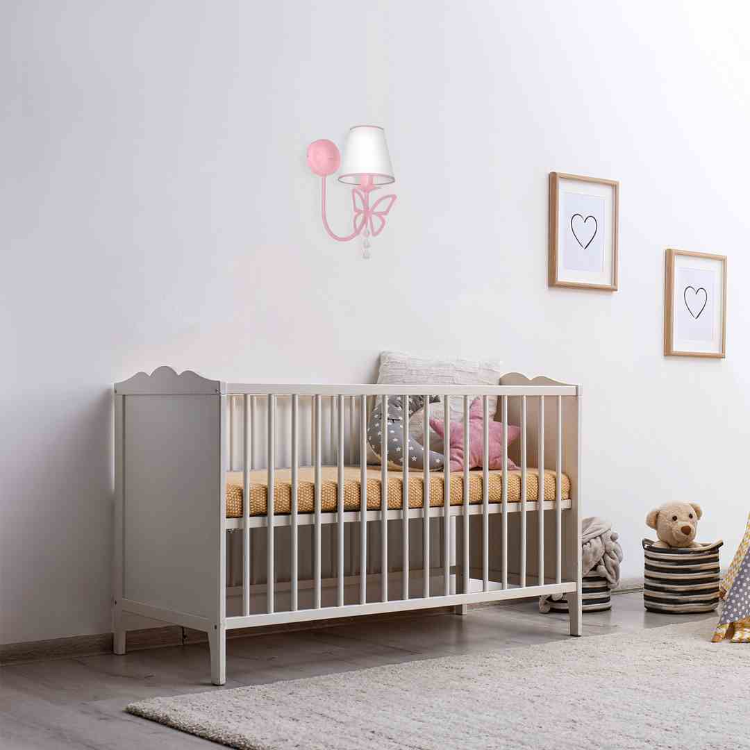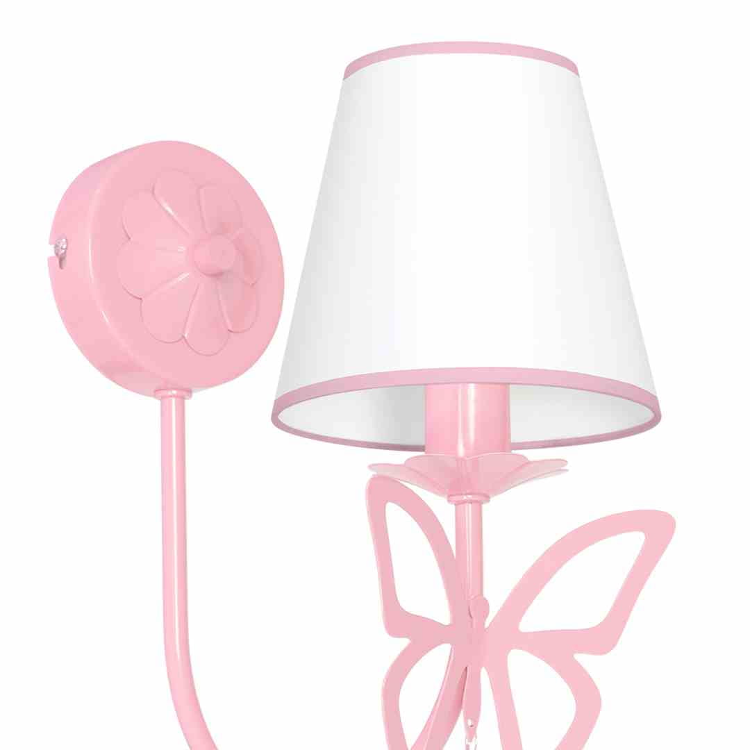 Kinkiet z ozdobnym motylkiem białym abażurem i kryształkami E14