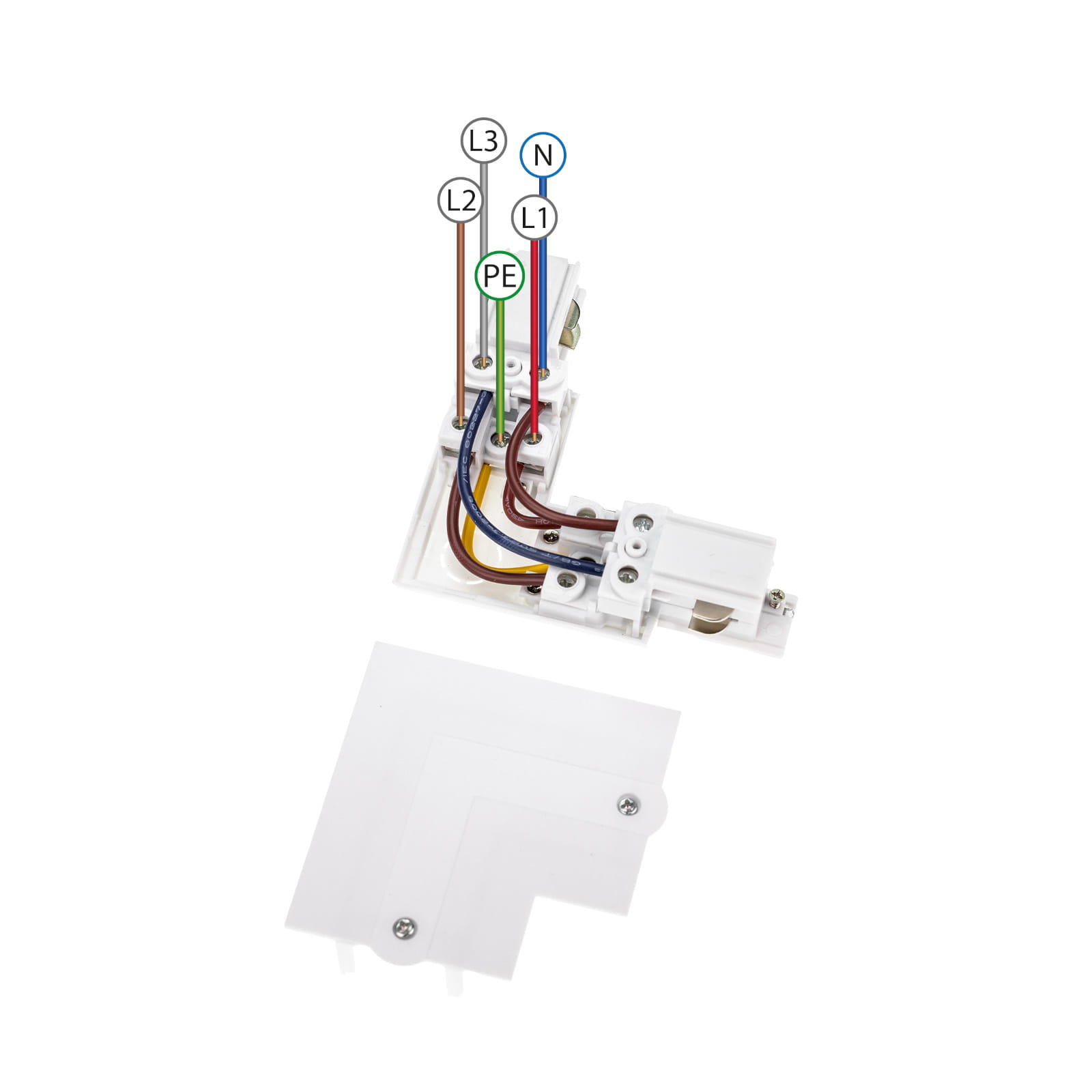Łącznik kątowy zasilający do szynoprzewodów 3-fazowych podtynkowych biały