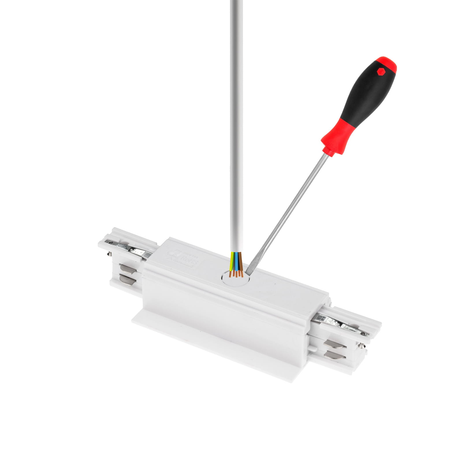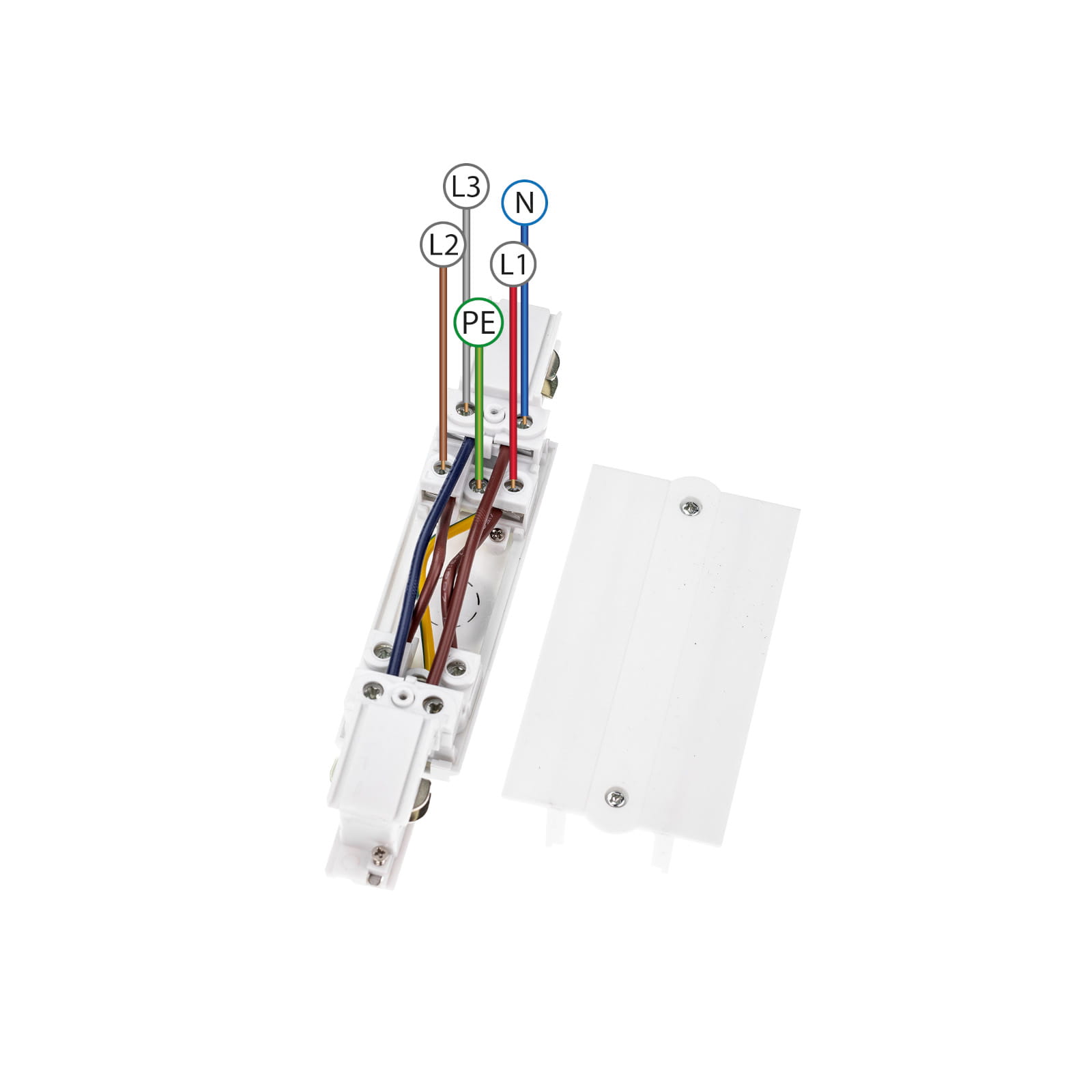 Łącznik liniowy zasilający do szynoprzewodów 3-fazowych podtynkowych biały