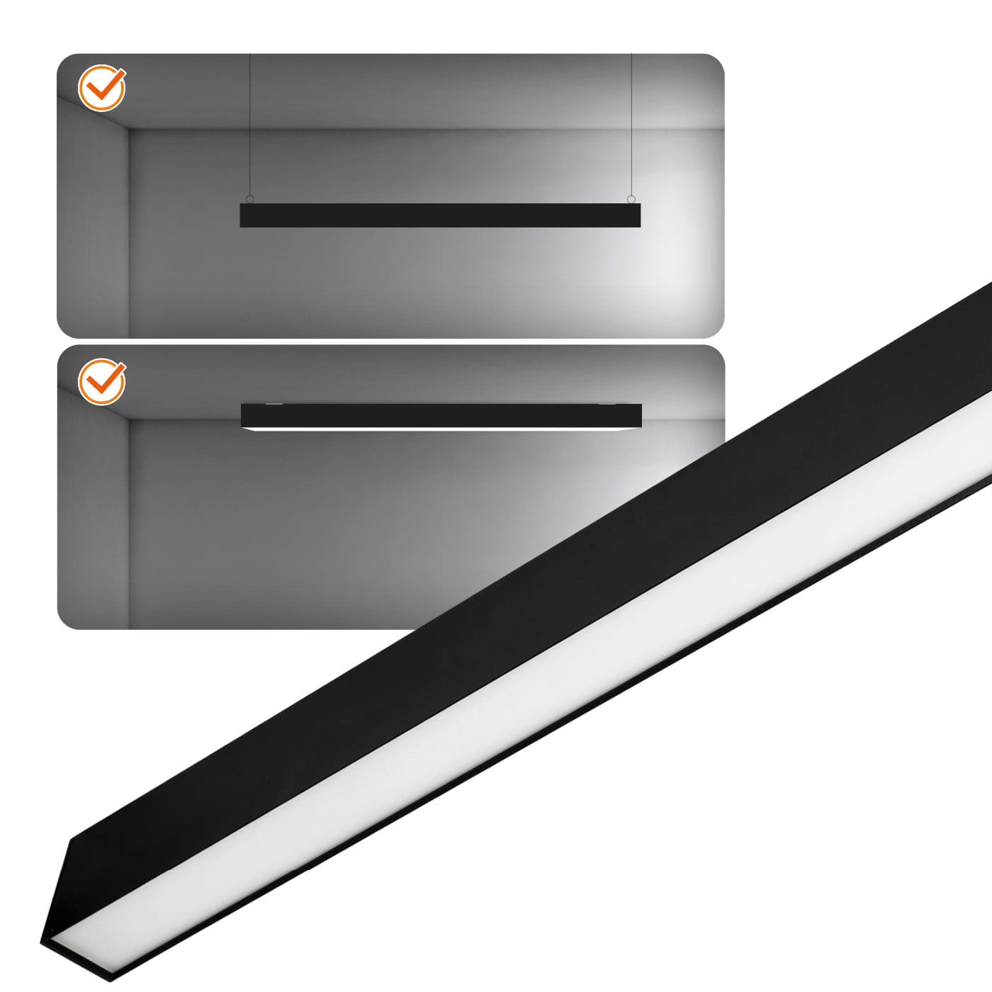 Szukasz perfekcyjnego oświetlenia do swojego miejsca pracy? Lampa biurowa sufitowa wisząca czarna KOLINE K1 40W 120 cm 4000K to rozwiązanie stworzone właśnie dla Ciebie. Ta nowoczesna lampa biurowa sufitowa dostarcza dużo neutralnego światła, idealnego do efektywnej pracy. Dzięki możliwości montażu na linkach, światło dociera bezpośrednio tam, gdzie tego potrzebujesz, zwiększając komfort i produktywność.