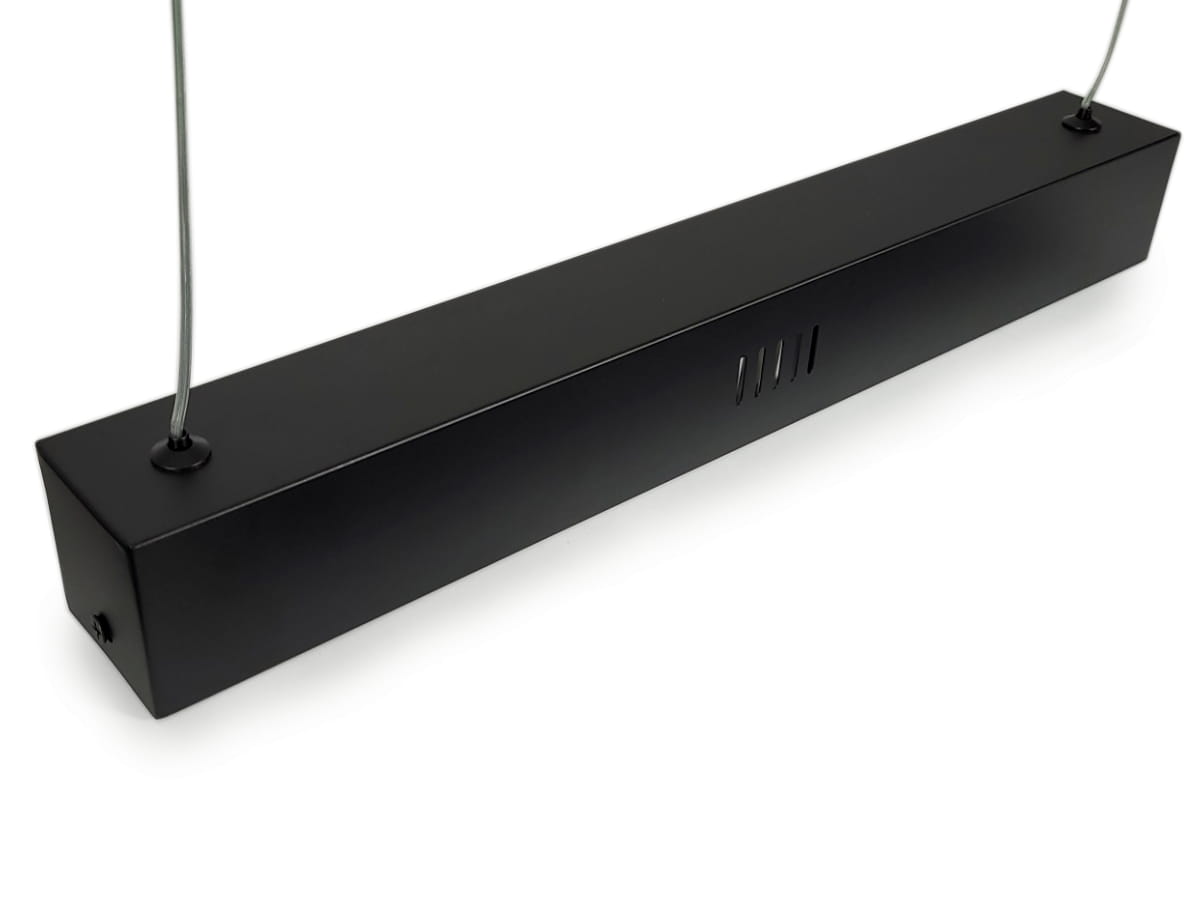 Ta oprawa liniowa LED wisząca nie tylko wygląda fantastycznie, ale także jest bardzo praktyczna. Została wyposażona w diody LED, które dają aż 4400 lumenów światła. Barwa światła jest neutralna, 4000 kelwinów, co oznacza, że światło jest naturalne i przyjazne dla oczu. Zasilacz lampy ukryty jest w poziomej podsufitce a przewód zasilający w jednej z linek, to wszystko sprawia, że lampa wygląda jeszcze lepiej. Oprawa liniowa LED wisząca jest także bardzo trwała. Podsufitka posiada otwory wentylacyjne, które skutecznie odprowadzają ciepło i wydłużają żywotność oprawy. Dzięki temu możesz cieszyć się nią przez wiele lat.