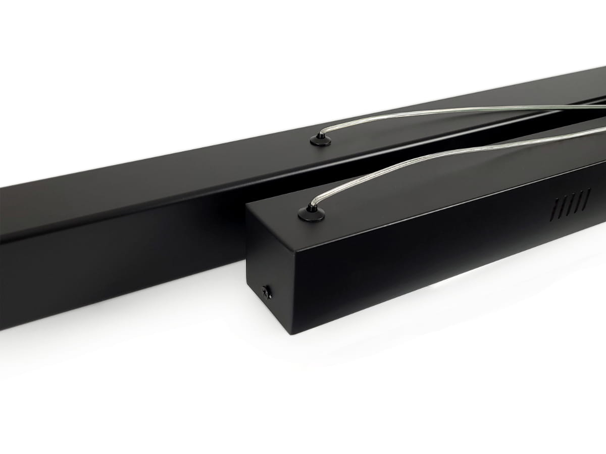 Ta lampa liniowa LED wisząca w kolorze czarnym to prawdziwa perełka wśród oświetlenia. Została wykonana z aluminium, dzięki czemu jest lekka, ale jednocześnie solidna i wytrzymała. Wygląda jak pozioma belka zawieszona na dwóch linkach, co daje niebanalny efekt wizualny. Linki są przymocowane do poziomej listwy, która przykręcana jest do sufitu. Długość linek można regulować (maksymalna długość to 120 cm), dzięki czemu można dostosować ją do wysokości pomieszczenia. Ta lampa z pewnością przyciągnie uwagę każdego, kto zobaczy ją w Twoim domu lub biurze.