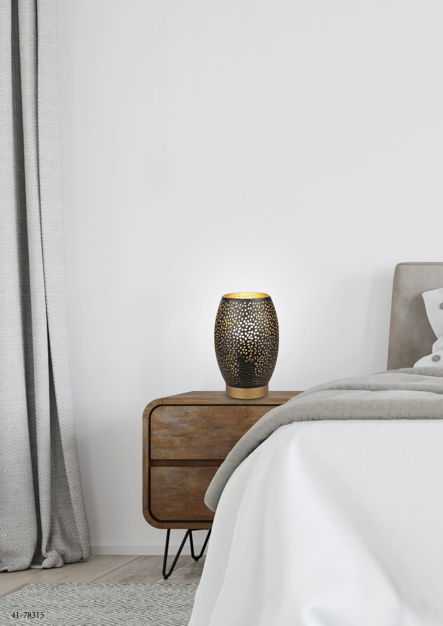Czarne i złote kolory dodają do designu lampki szykowności i elegancji. Dlatego świetnie zaprezentuje się ona także w domach, w których króluje styl art deco i eklektyczny. W prezentowanym modelu może zostać zamontowana żarówka z gwintem E27. Dzięki temu, że został on wykonany ze stali, jest trwały i ponadczasowy, a do tego nieco awangardowy.